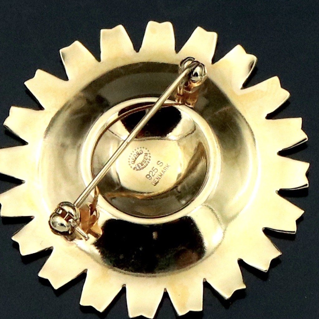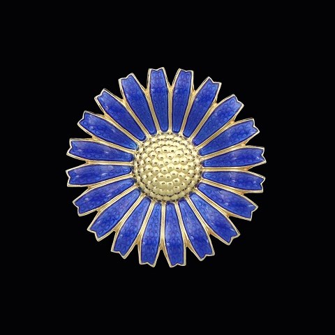 Georg Jensen. Sterling Silver Daisy Brooch with Blue Enamel. 43mm.Crafted by Georg Jensen, Denmark.