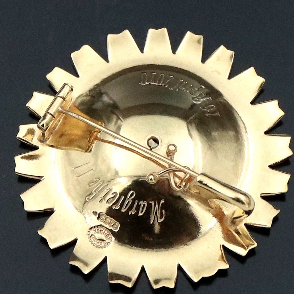 Georg Jensen. Gilded Silver Daisy Brooch / Pendant with Blue Enamel. 50mmProduced to celebrate the 70th birthday of