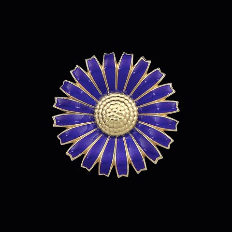Georg Jensen. Sterling Silver Daisy Brooch with Royal Blue Enamel. 43mm.Crafted by Georg Jensen, Denmark.