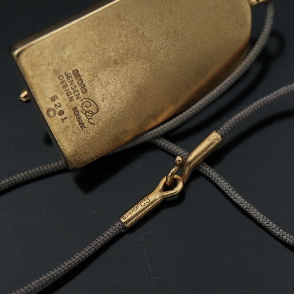 14K gold plated brass, mirror. With original Georg Jensen Cotton Cord.