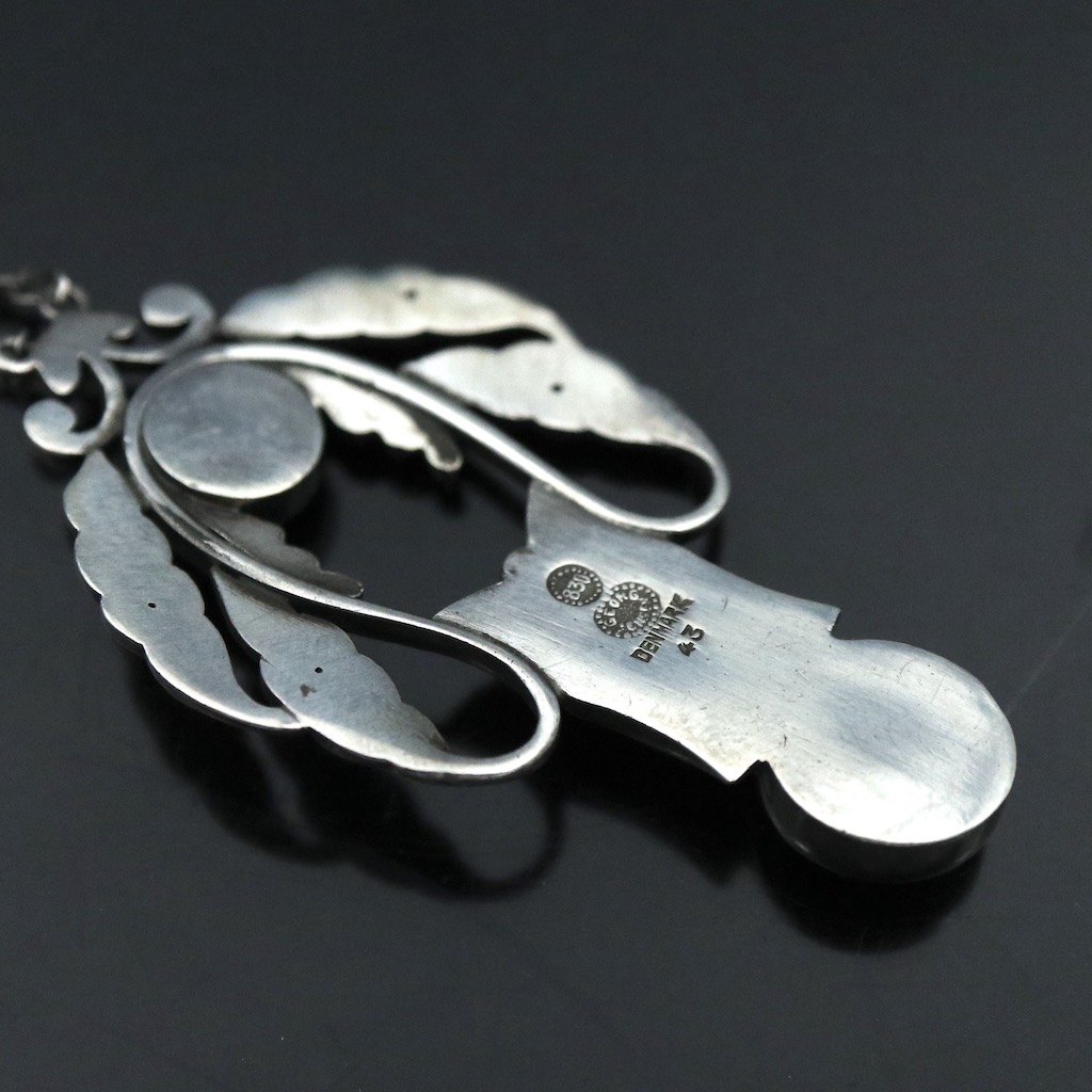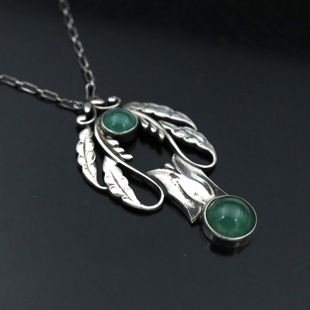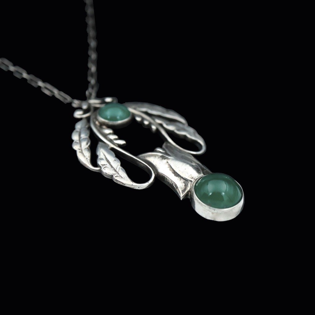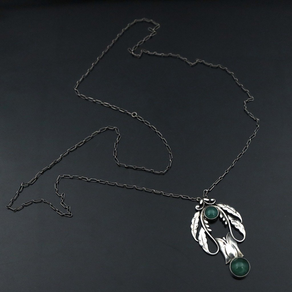 Georg Jensen. Silver Pendant #43 with Green Agate - 1915-27 Hallmarks.Designed by Georg Jensen 1866 - 1935.