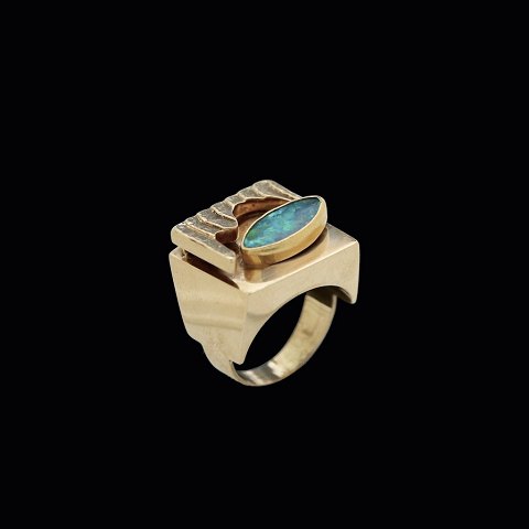 Frank Ahm. Danish 14k Gold Ring with Opal.Designed and crafted by Frank Ahm 1970 - 2000, Denmark.