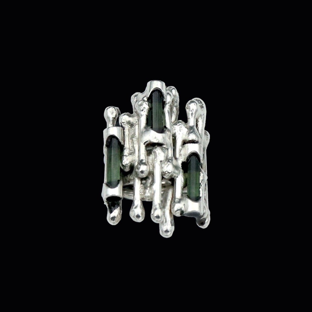 Flemming Knudsen - Denmark. Sterling Silver Ring with Tourmaline Crystals.Designed and crafted Flemming Knudsen 1967 - .