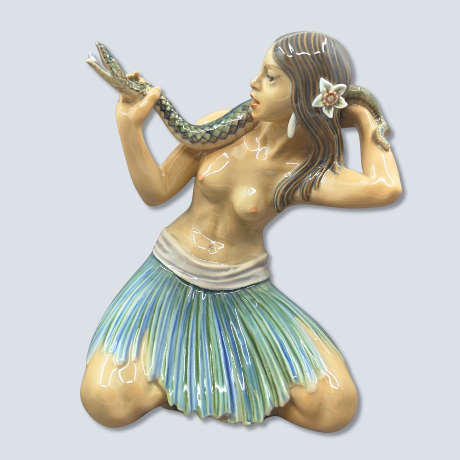 Dahl Jensen; Porcelain figurine "Snakecharmer". Model #1299.Second. H. 20,5 cm. Stamped with royal crown and "DJ Copenhagen".