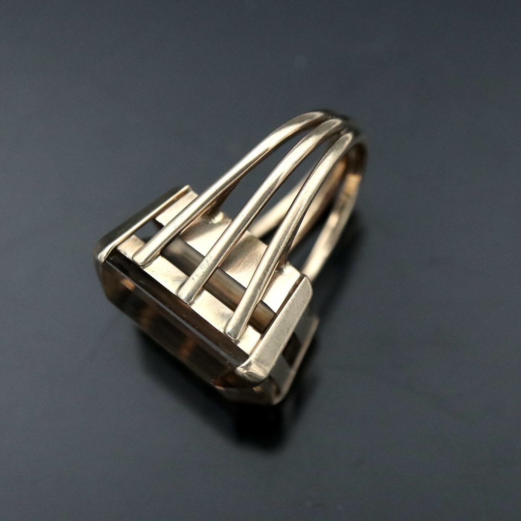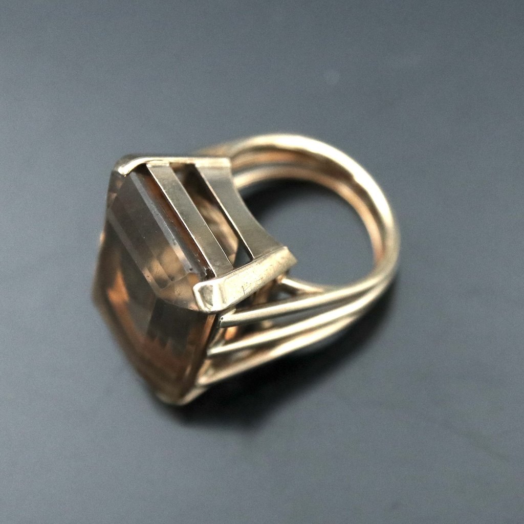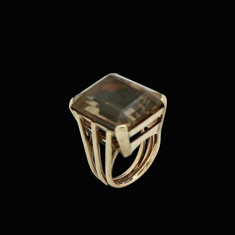 Danish 14k Gold Cocktail Ring with Smoke Quartz.Stamped 585.