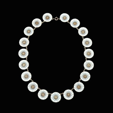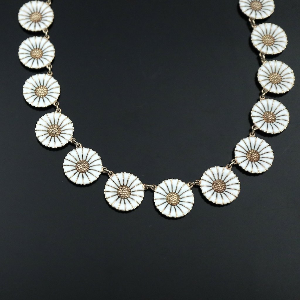 Georg Jensen. Gilded Sterling Silver Daisy Necklace with Enamel - 18mm.Made in Denmark by Georg Jensen.