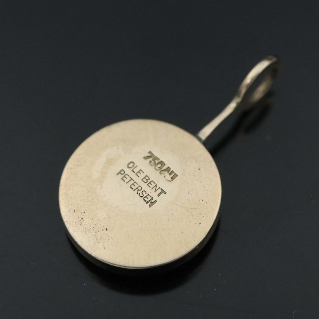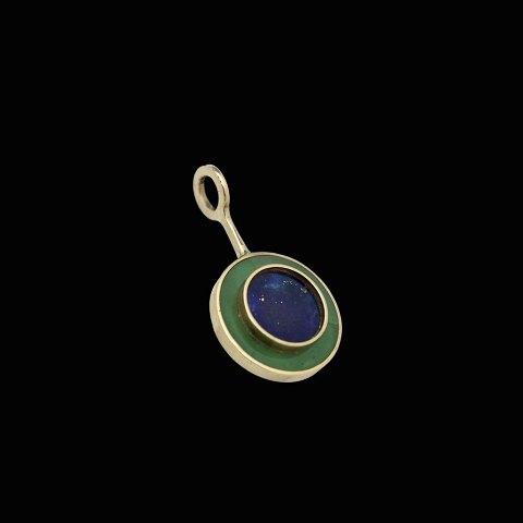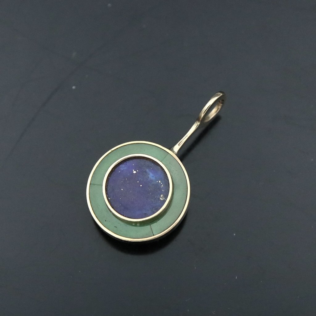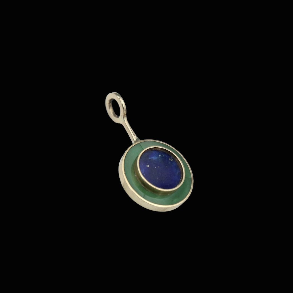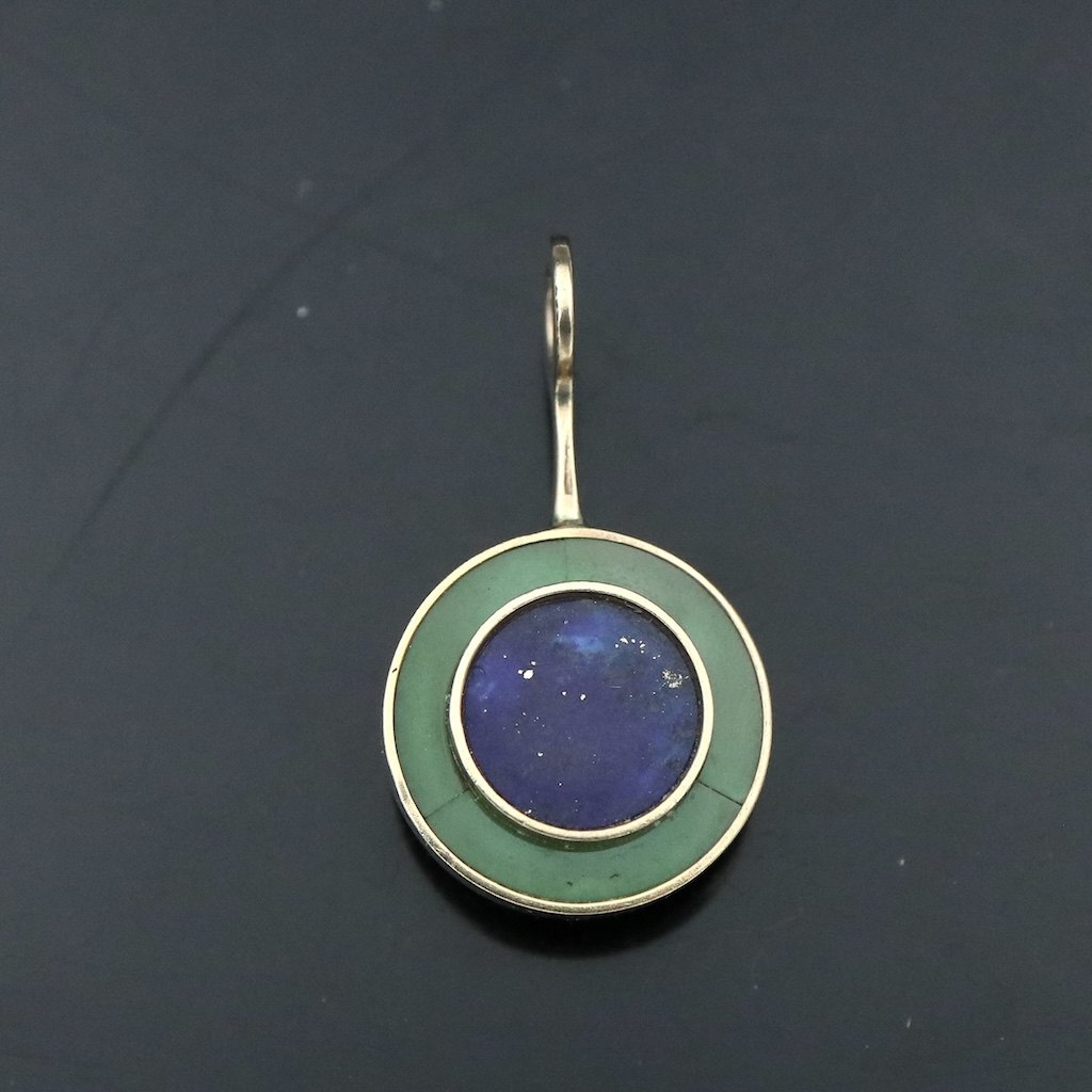 Ole Bent Petersen - Copenhagen. 18k Gold Pendant with Nephrite & Lapis Lazuli.Designed and crafted by Ole Bent Petersen - Copenhagen 1973 - 1990.