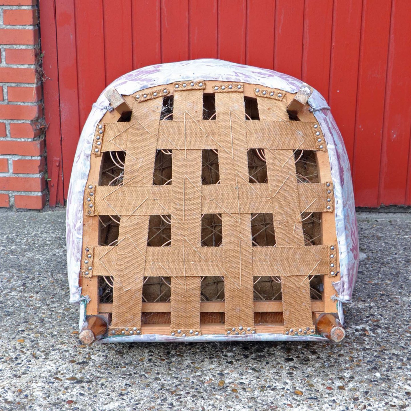 Fremstår med brugsspor på stof og ben. Trænger til ompolstring.