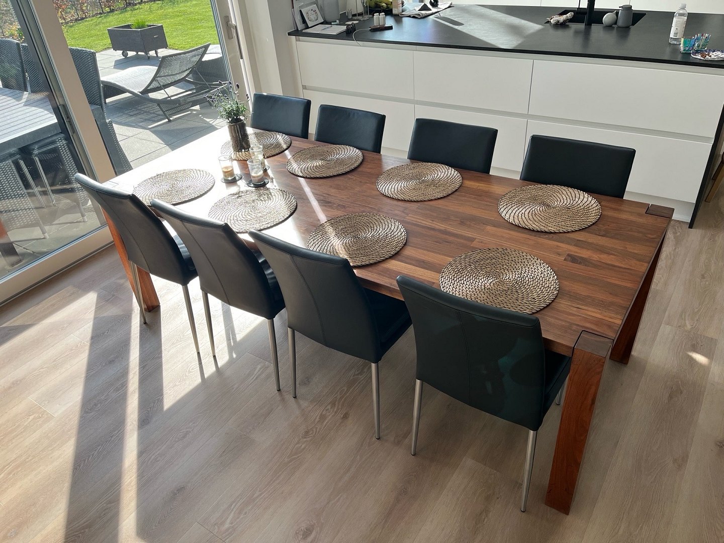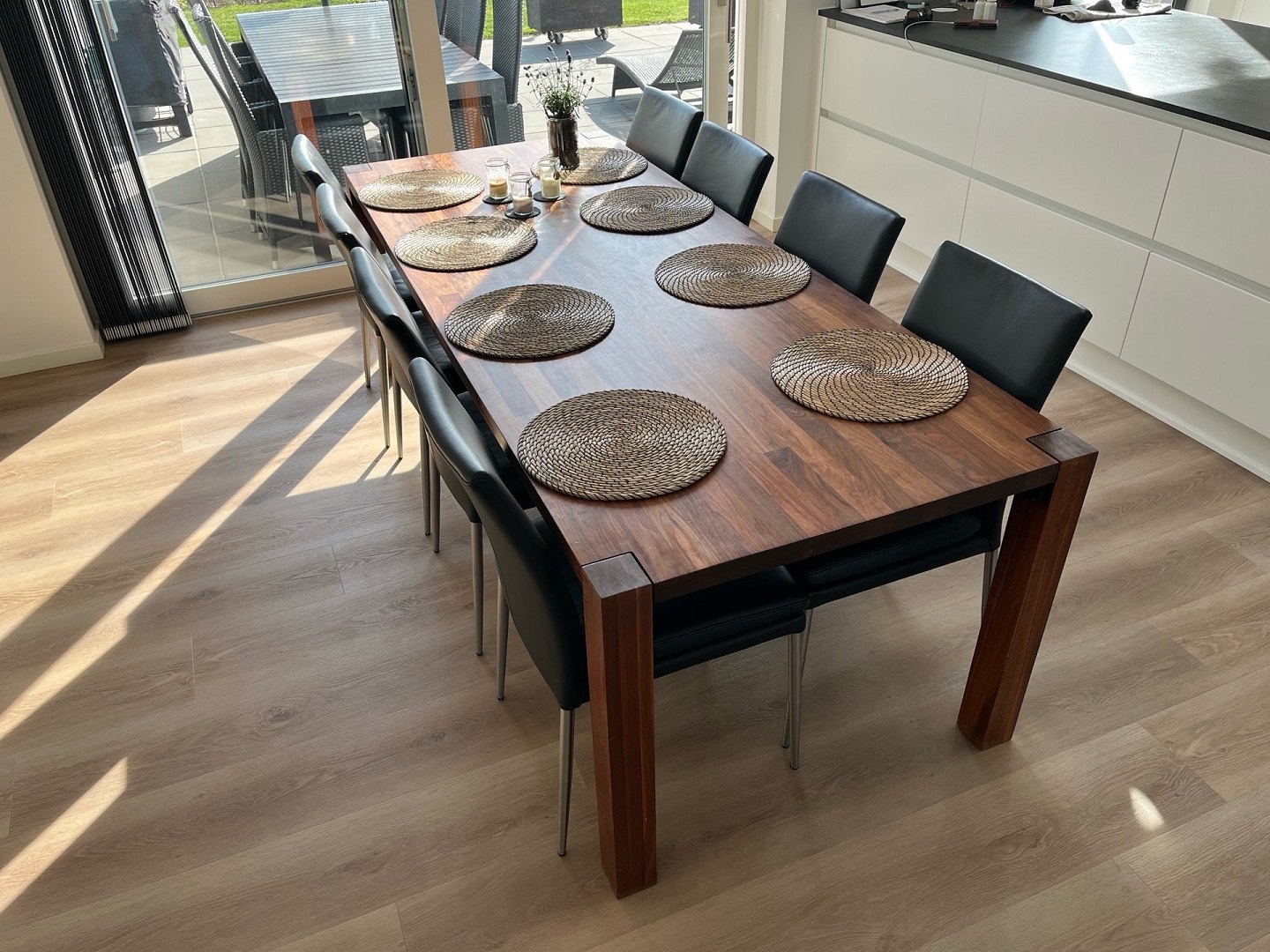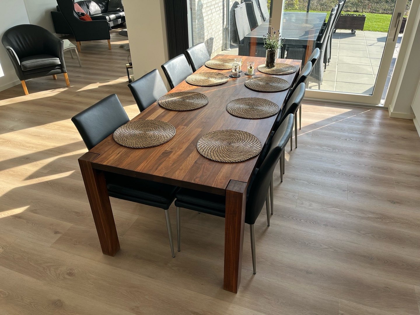 Hand-built custom-made dining table in walnut. The table is built by a cabinetmaker who knows what quality is, the table top is reinforced with iron pieces that are milled into the table top. The table has removable legs. The table is cleaned and oiled and ready for delivery. Table measurements. Length 230 cm. Width 90 cm. Height 73 cm. Our concept. Purchase of newer/used furniture. Thorough cleaning and treatment. Viewing by appointment. Delivery for a fee throughout Denmark. See also our other designer furniture from, among others, Poul Kjørholm, Mogens Hansen, Søren Lund, Arne Jacobsen, Jørgen Gammelgaard, Nielaus, Skalma, Fritz Hansen, Cph, Skovby, Boconcept, and many others on our website Mrretrodesign.dk Dealer