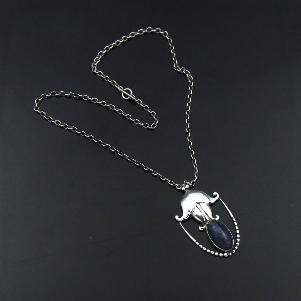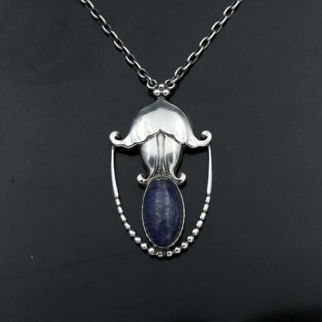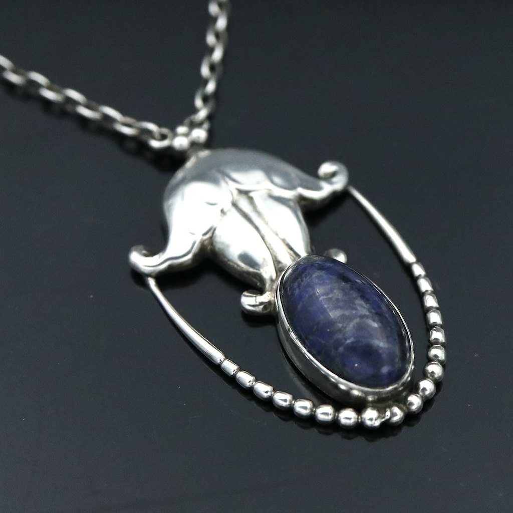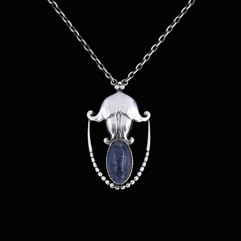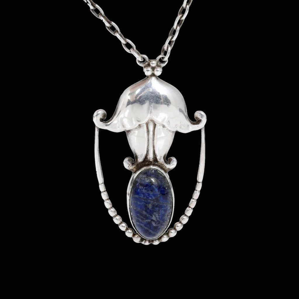 Georg Jensen. Silver Pendant #42 with Lapis Lazuli - 1915-27 Hallmarks.Designed by Georg Jensen 1866 - 1935.