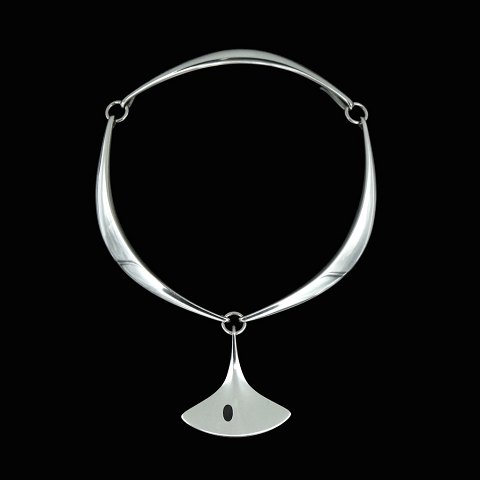 Hans Hansen. Sterling Silver Neckring #320 with Pendant #323 - Bent Gabrielsen.Pendant with black Enamel.