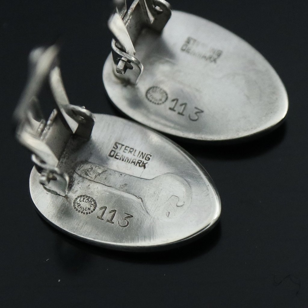 Georg Jensen. Sterling Silver Ear Clips #113 - Gundorph Albertus.Design by Gundorph Albertus (1887-1970). Made by Georg Jensen A/S in Denmark.
