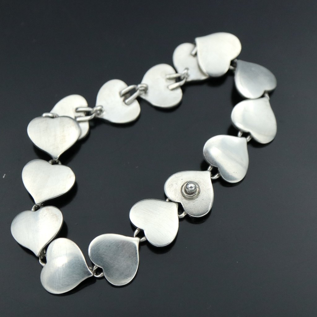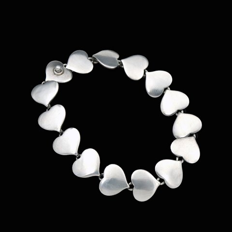 Karl Gustav Hansen for Hans Hansen. Sterling Silver Heart Bracelet #236. 19 cm.Designed by Karl Gustav Hansen and crafted by Hans Hansen Silversmithy, Kolding.