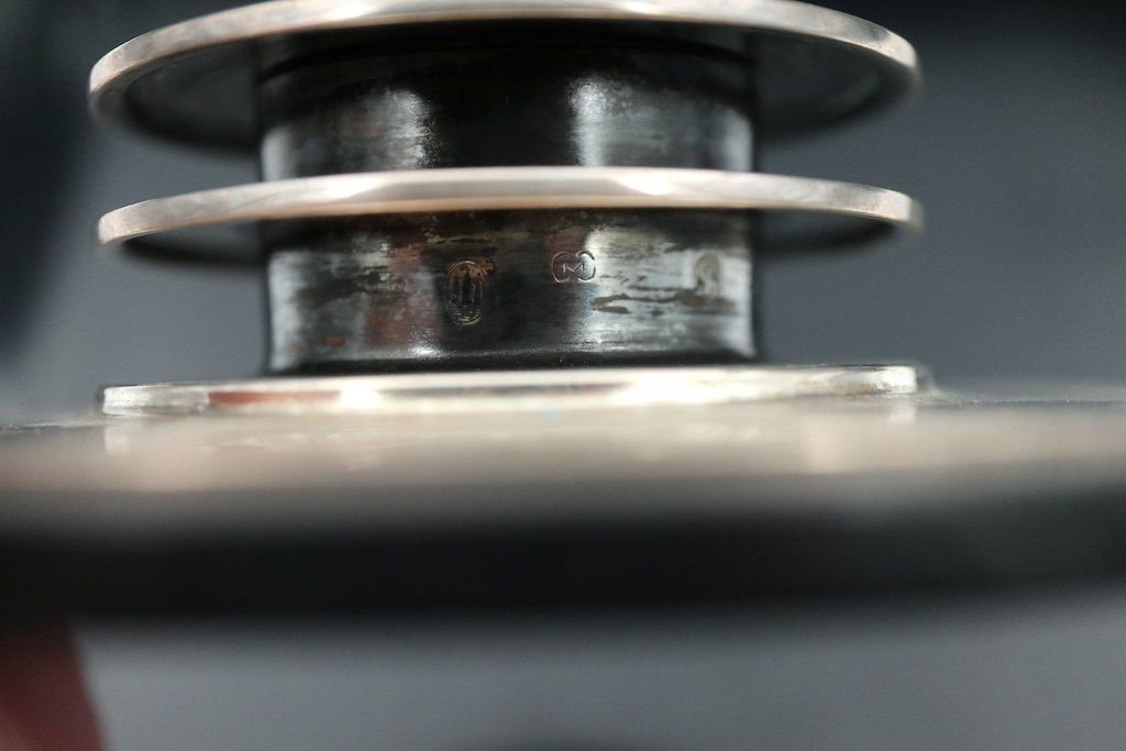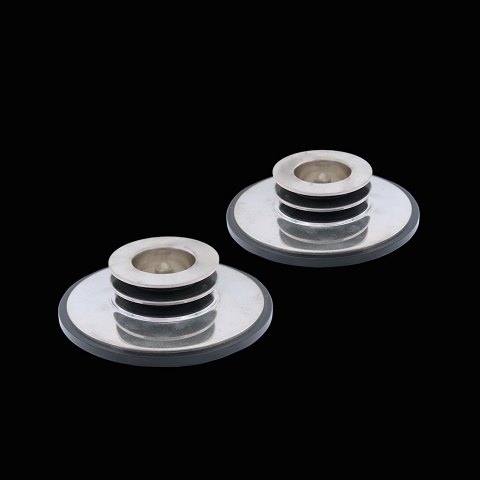 Carl M. Cohr. Art deco Silver Candlesticks - 1939.Ebonite foot.