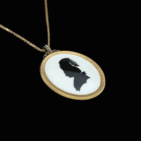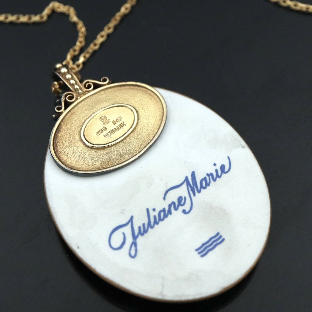Royal Copenhagen. Porcelain and Gilded Sterling Silver Pendant - Juliane Marie.Designed and crafted by Royal Copenhagen.