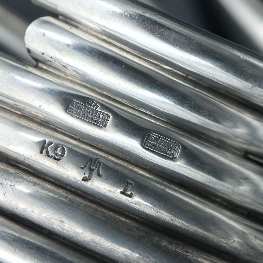Stamped with A. Michelsen Hallmarks. Copenhagen, Sterling, Denmark. K9(1961) and Ibi Trier Mørch monogram.