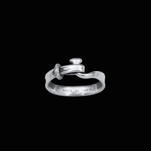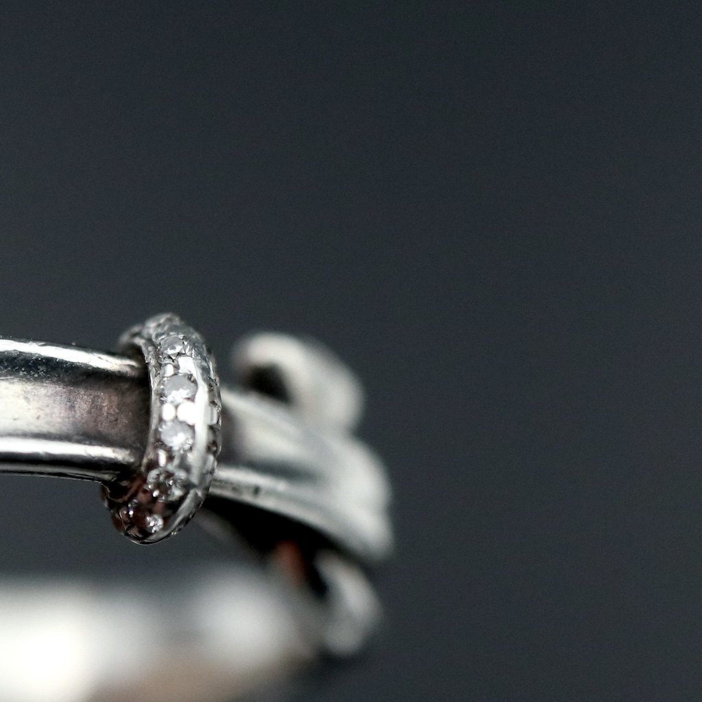 Georg Jensen. Sterling Silver Torun Ring with Pavé Diamonds #204A.Pavé set white brilliant cut diamonds.