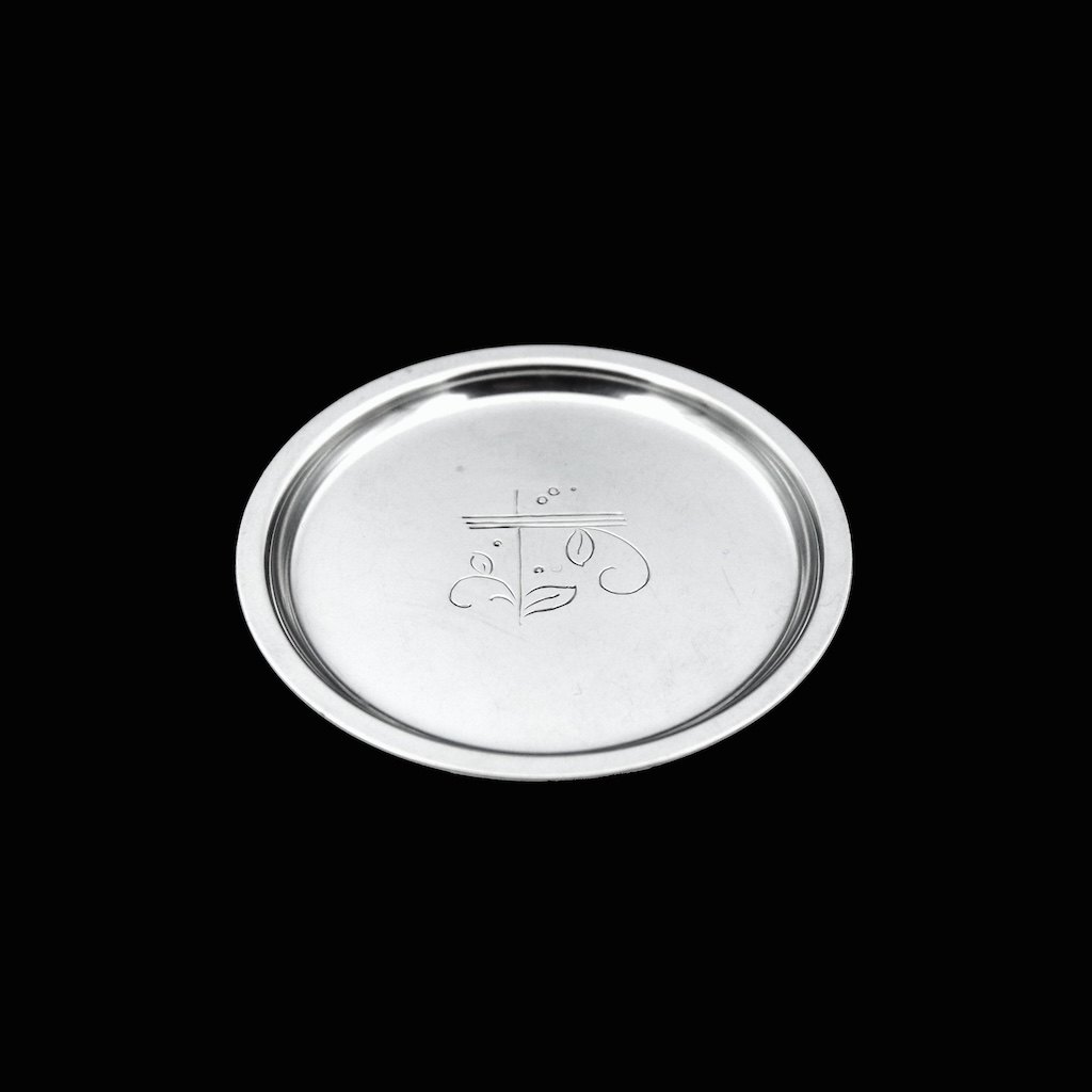 Svend Weihrauch - F. Hingelberg. Art deco Sterling Silver Glass Coaster #32501.Individually hand engraved with a unique art deco style pattern.