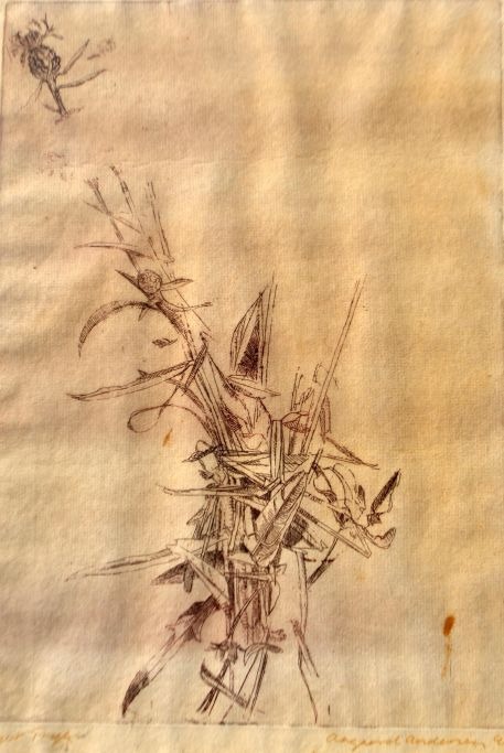 Aagaard Andersen, Gunnar (1919 - 1982): A plant. Etching. Own print. Signed. 29 x 21 cm.Framed with silver frame: 35 x 25 cm.