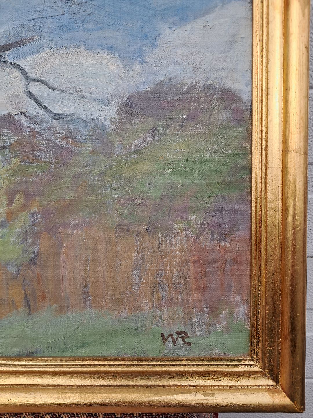 Maleri i guldmalet ramme, fra 1970erne.Højde 61cm Bredde 55cm
