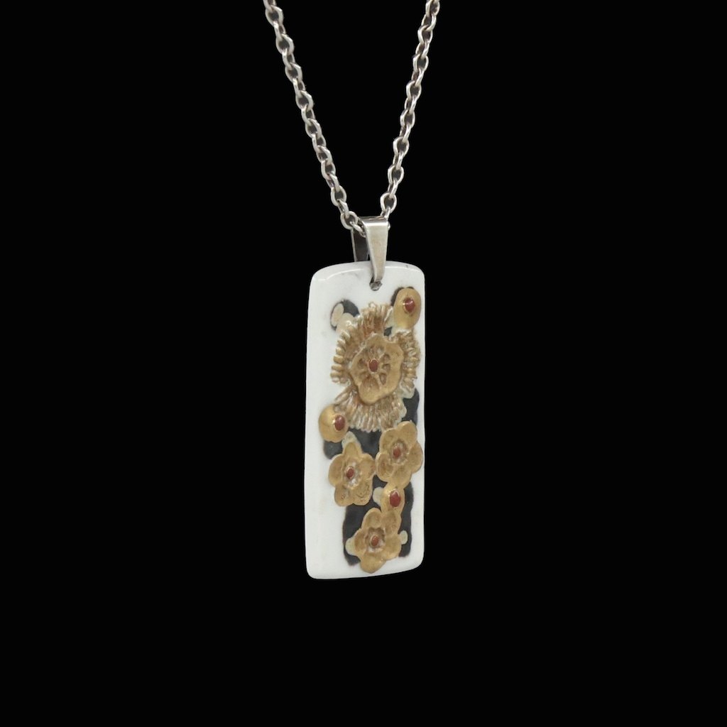 Royal Copenhagen. Sterling Silver Pendant with Porcelain.Designed and crafted by Royal Copenhagen Porcelain - Copenhagen 1975 - 1987.