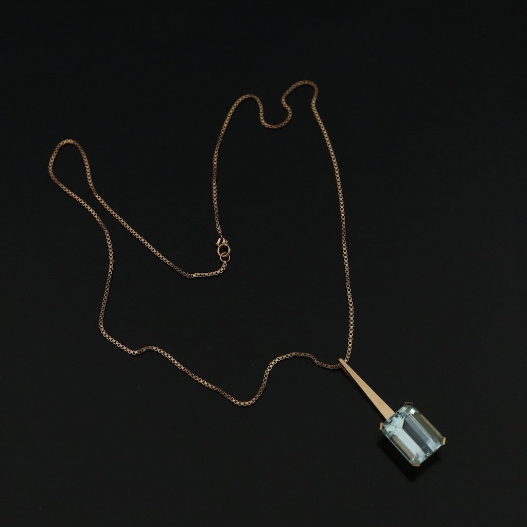 Sven Haugaard - Denmark. 14k Gold Pendant with Aquamarine.Designed and crafted by Sven Haugaard - Kolding 1962 -.