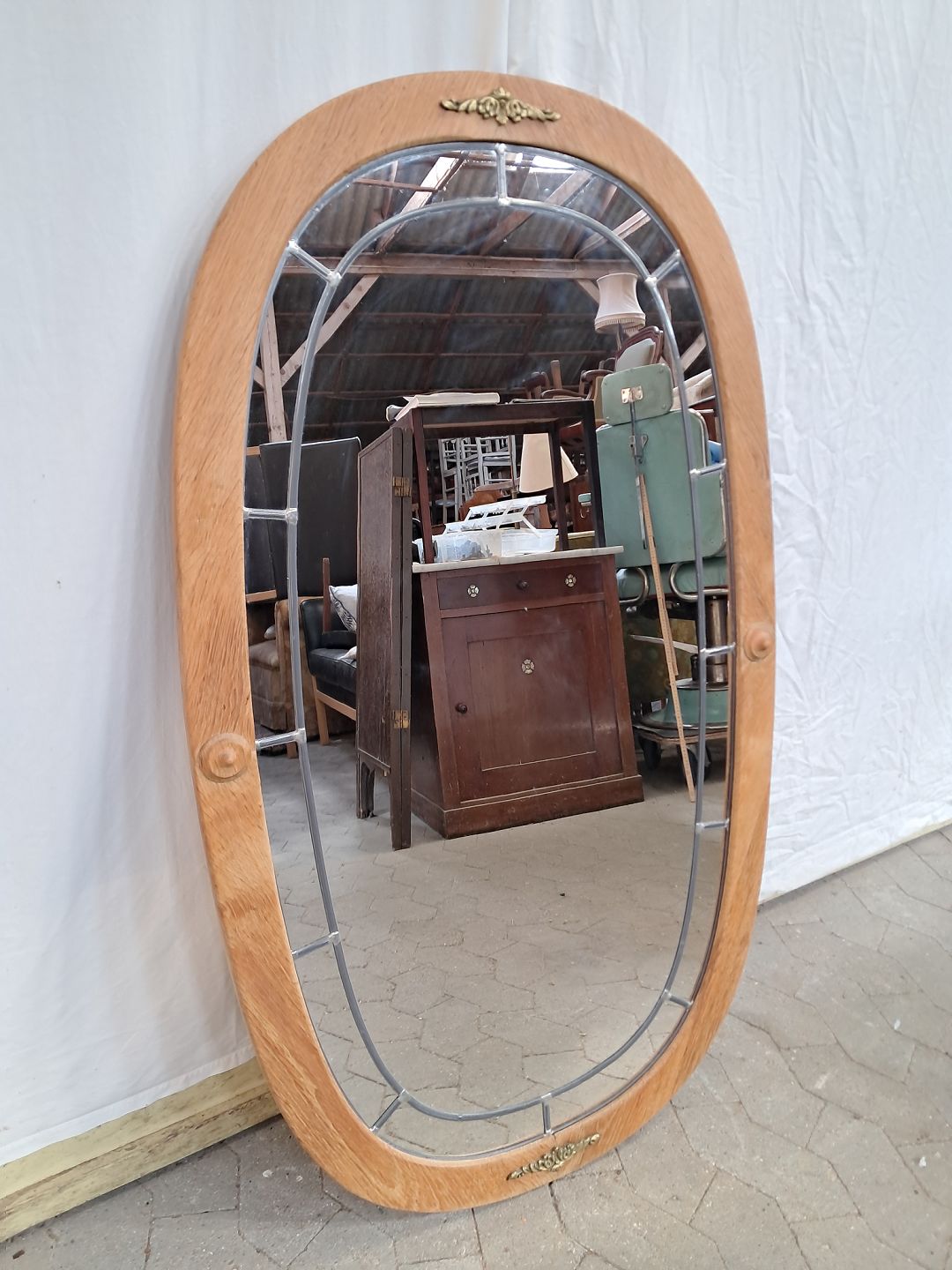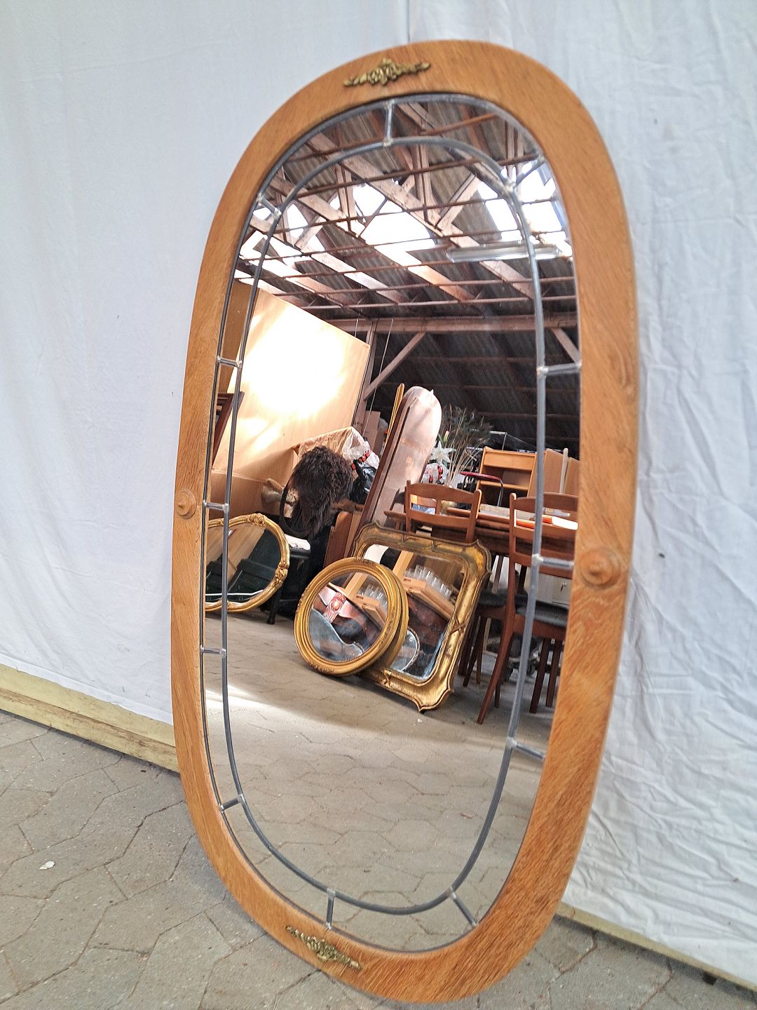 Spejl i massivt egetræ, fra 1980erne.Det har brugsspor.
