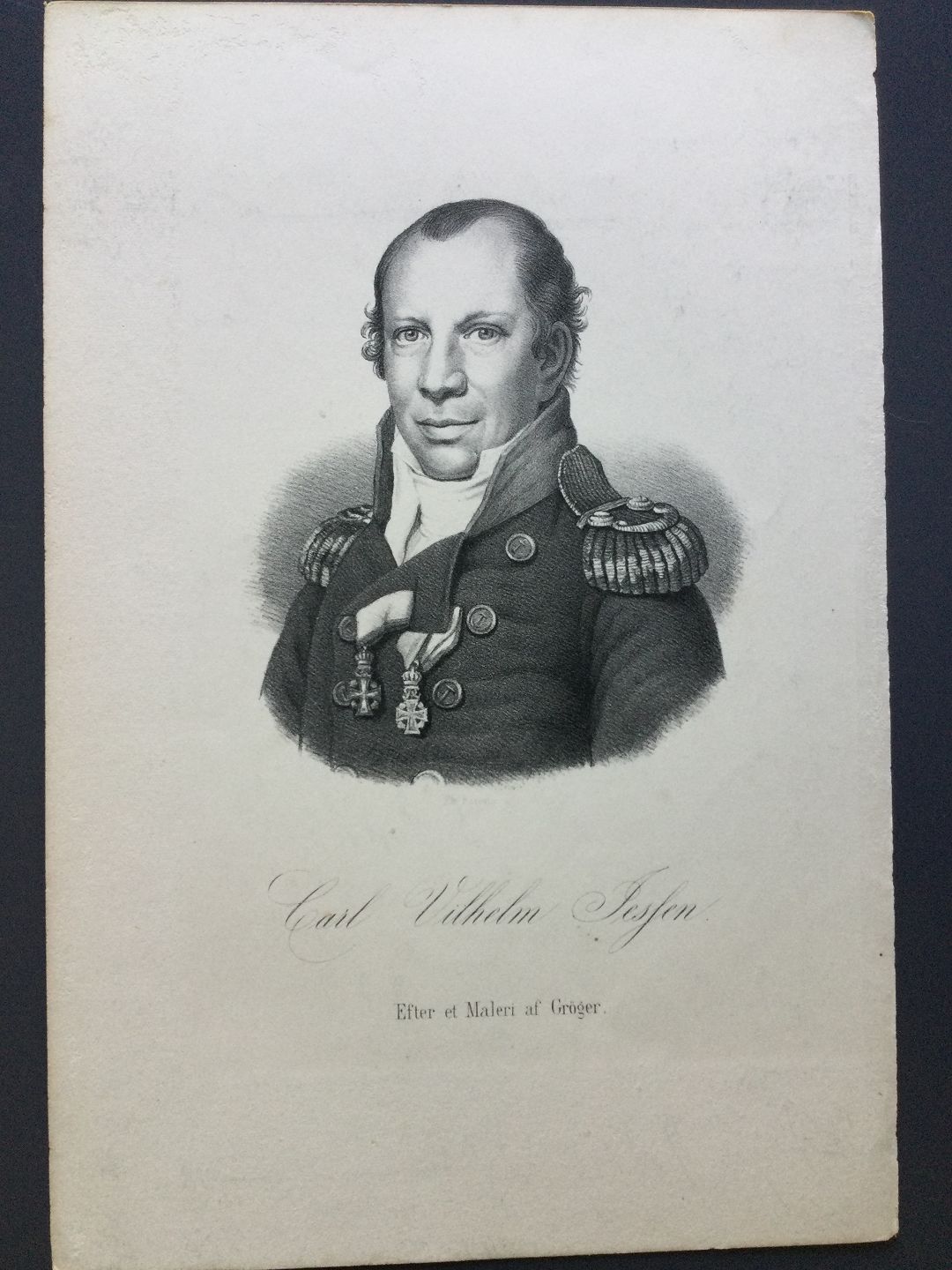 Portræt af Officer Carl Wilhelm Jessen - litografi af Em. Bærentzen.