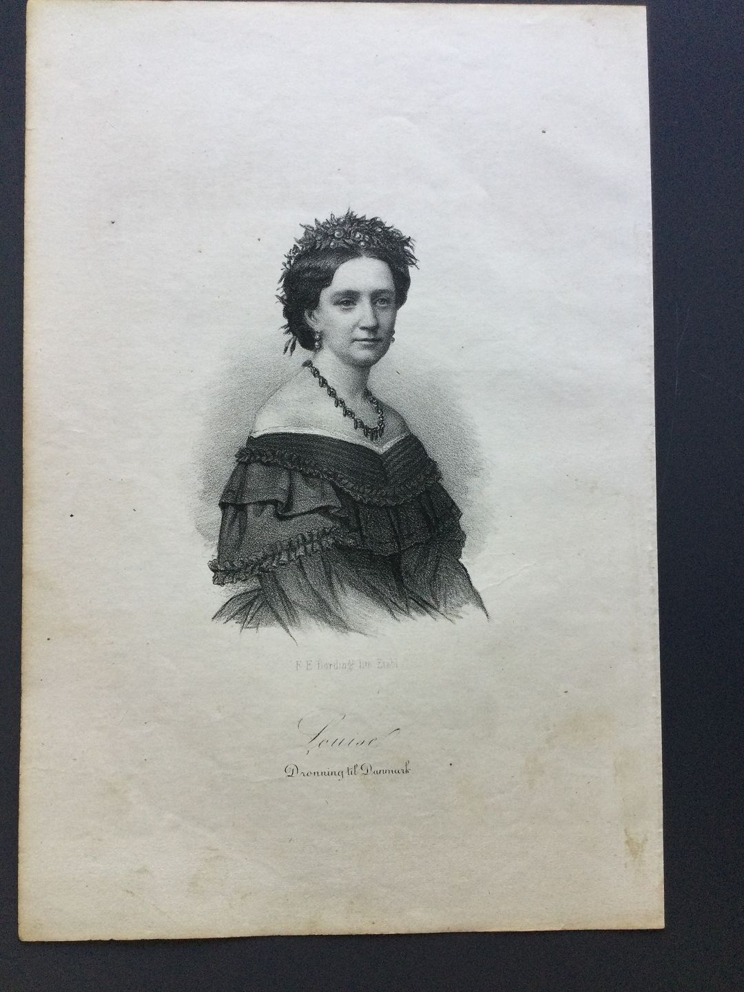 Litografi af F.E. Bording - Portræt af HM Dronning Louise af Danmark.