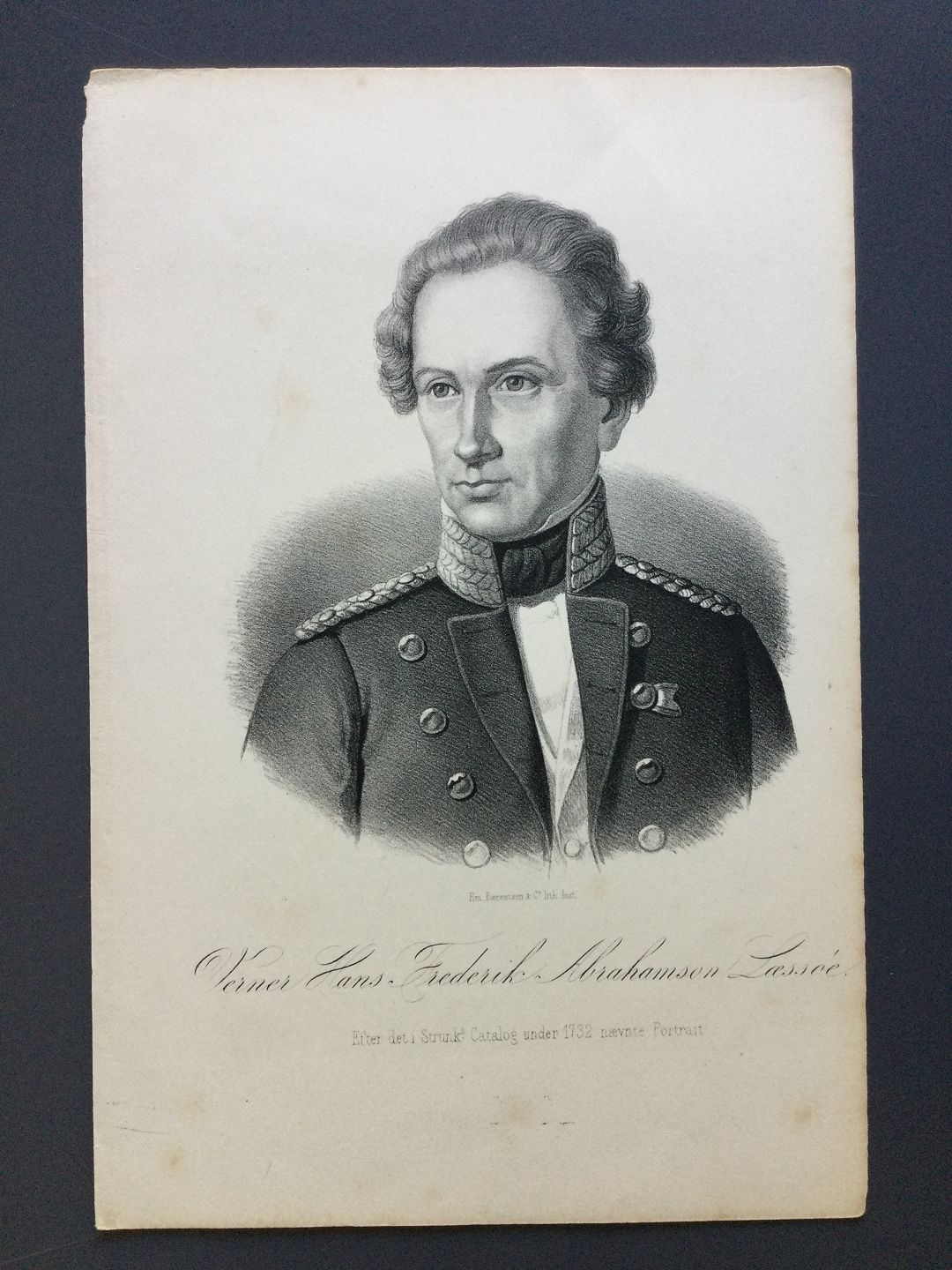 Portræt af den danske officer Frederik Læssøe - litografi af Em. Bærentzen ca. 1850.