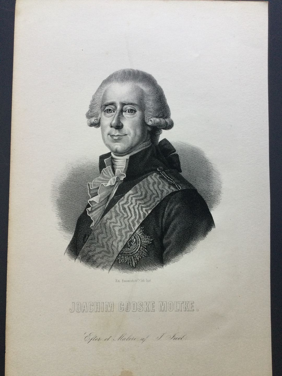 Litografi af Em. Bærentzen - Portræt af Statsminister, Lensgreve Joachim Godske Moltke til Bregentved.