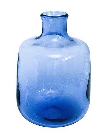 Holmegaard, Safir, Stor vase i transparent blåt glas. Designet af Per Lütken i 1962. Serien starter i 1955. Signeret Holmegaard PL 1962. Højde 24 cm. Diameter 15 cm. Flot stand. Pris: 950 kr. Udstiller
