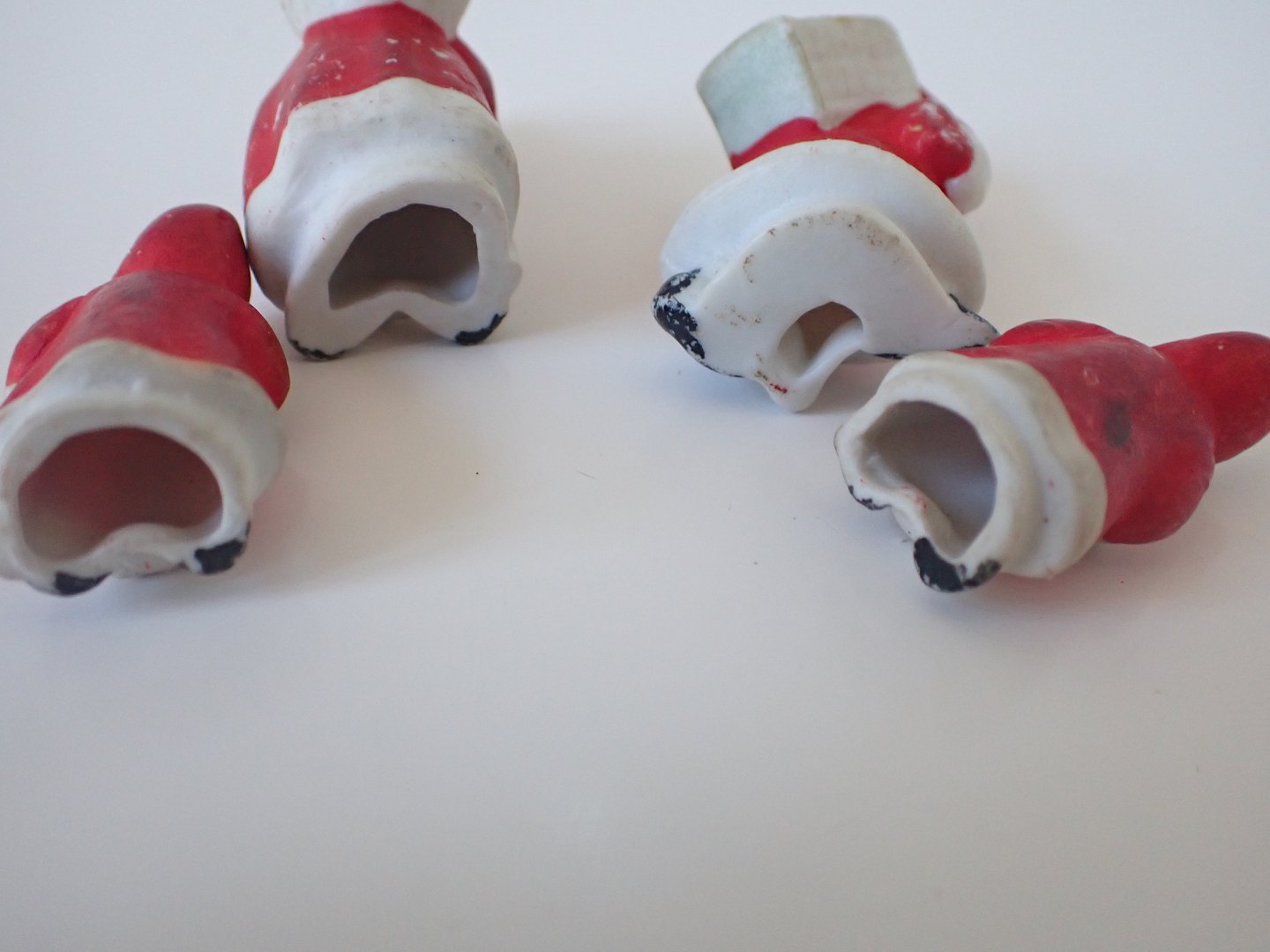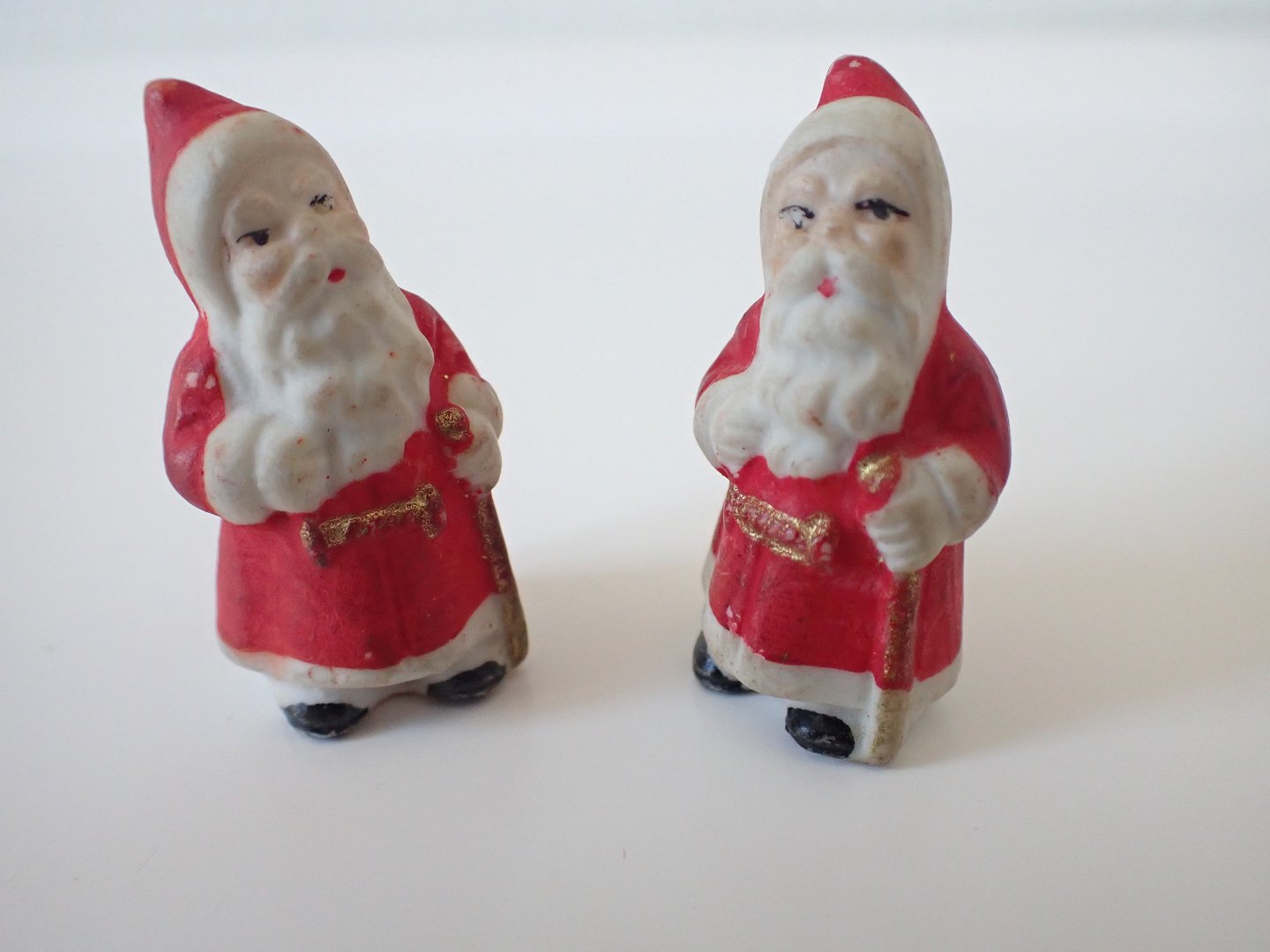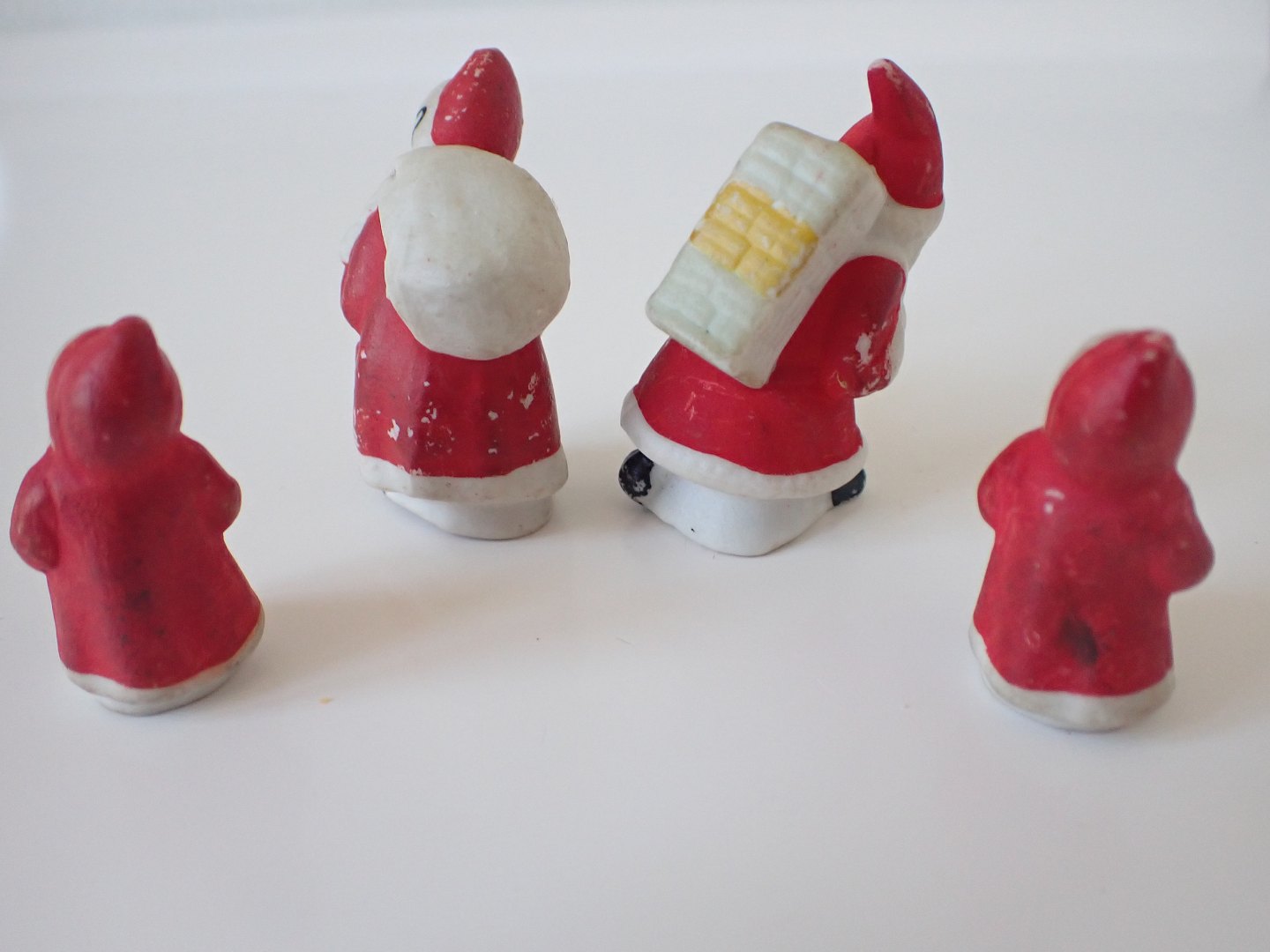 4 håndmalede tyske biscuit julemænd 2 med gavesække på ryggen og 2 uden.. Ca. 1930. Højde: 2 stk. på 3,8 til 250 kr. pr. stk. og 2 stk. 5 cm. til 300 kr. pr. stk. I pæn tidstypisk stand. Dealer