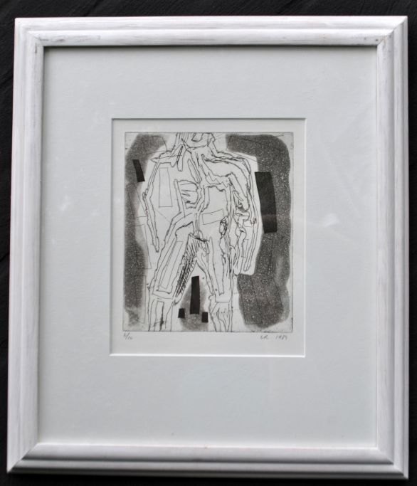 Ravn, Lars (1959 - ) Denmark: Composition, 1989. Etching. Signed: LR 1989. 6/10. H: 19.5 cm. W: 17 cm.Framed: H: 46 cm. W: 40 cm.