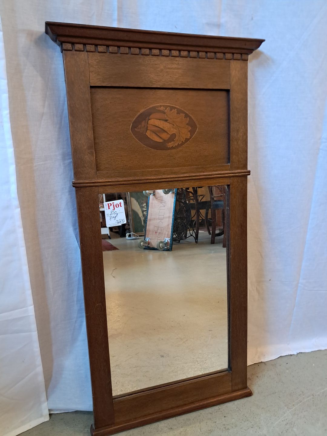 Spejl i fineret mahogni, fra 1920erne.Det har små brugsspor.