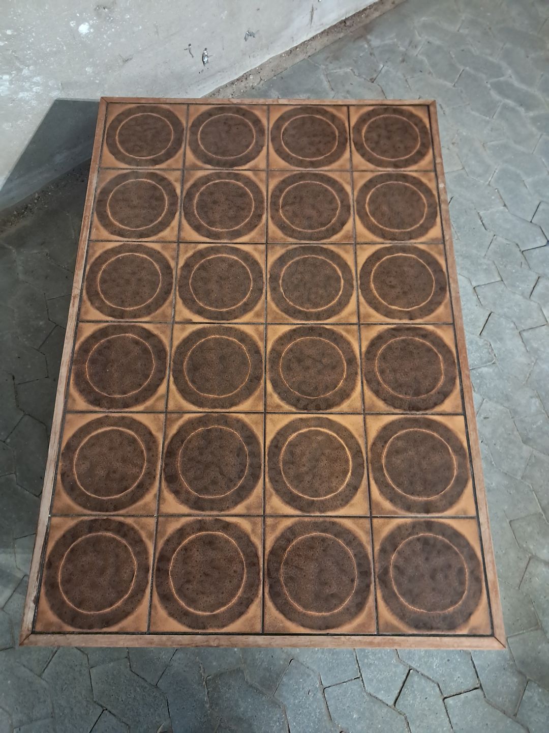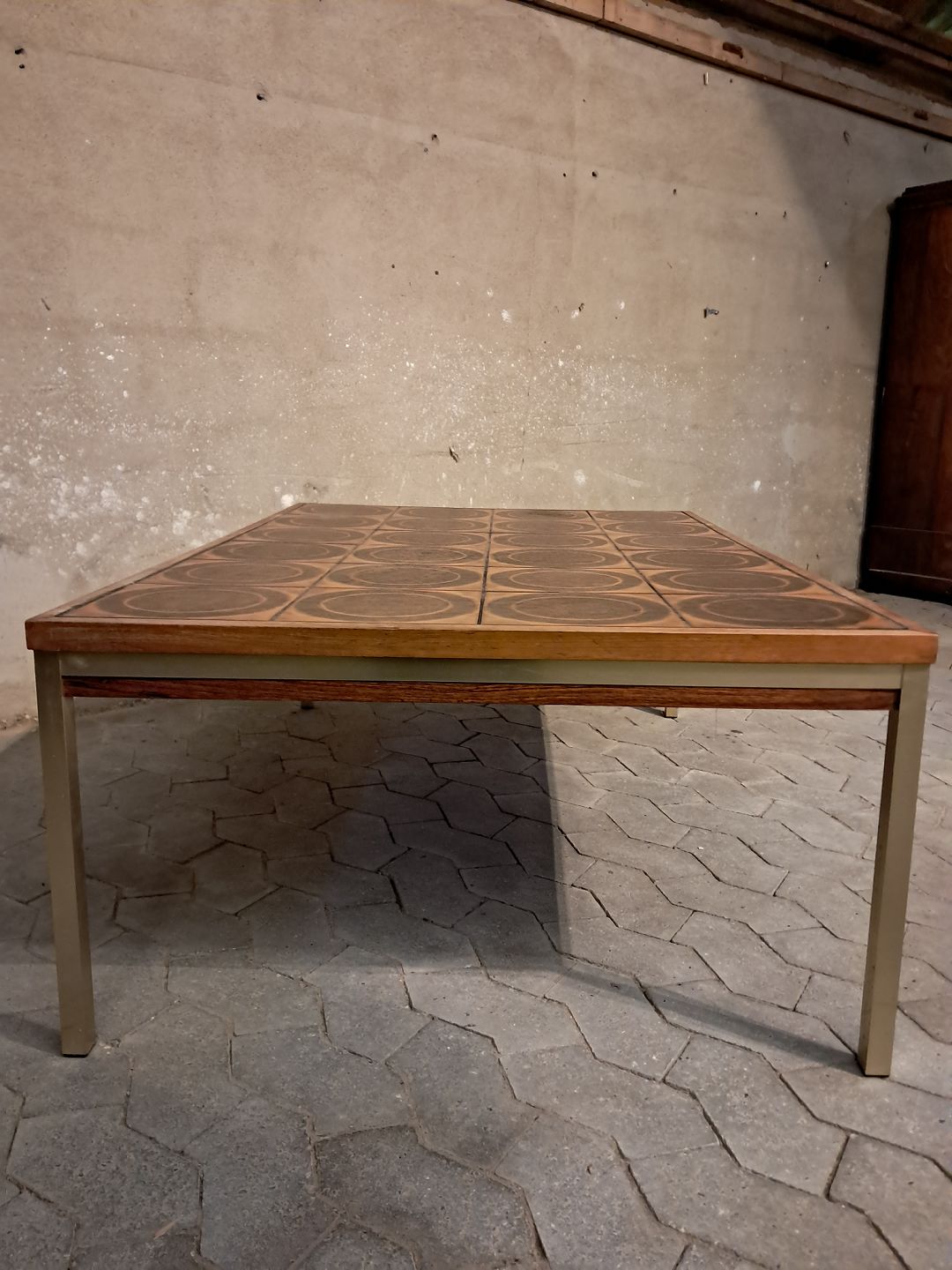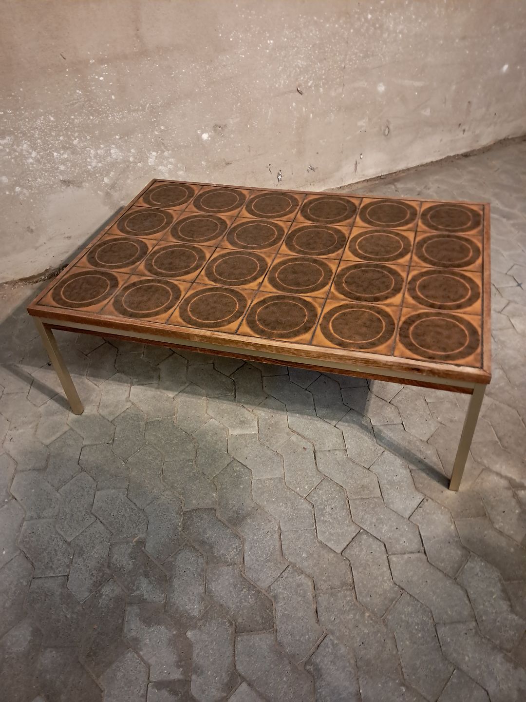 Kakkel sofabord i palisander og metal, fra 1960erne.Det har brugsspor.