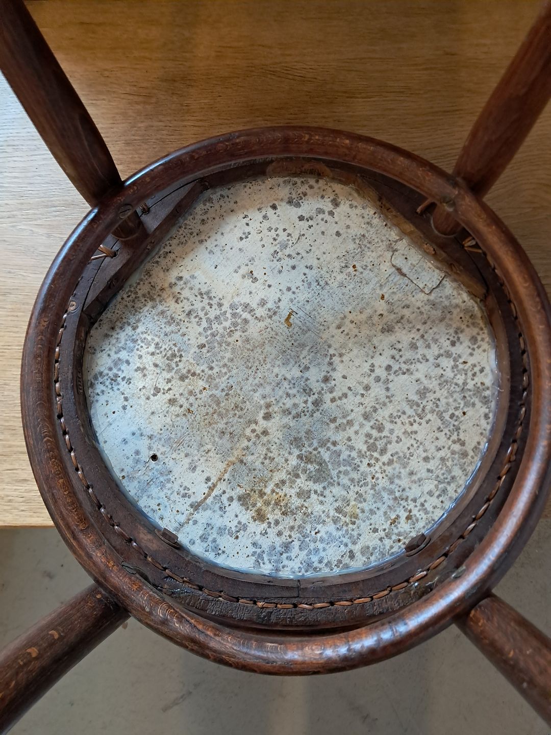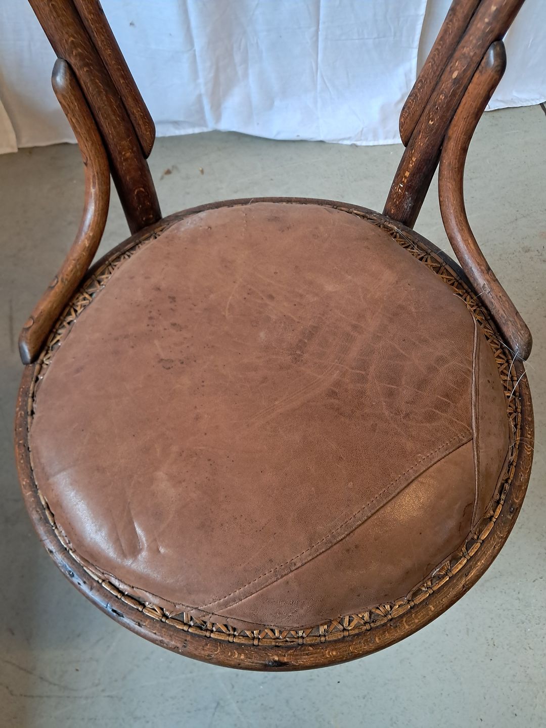 Stol i massivt bøgetræ, fra 1920erne.Den rokker lidt og har brugsspor.