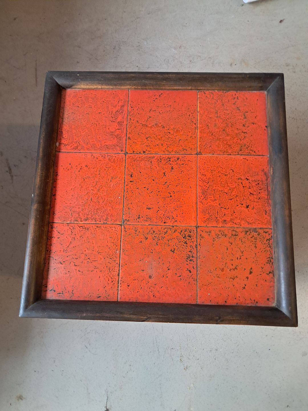 Lampebord i birketræ med kakler, fra 1930erne.Det har brugsspor.