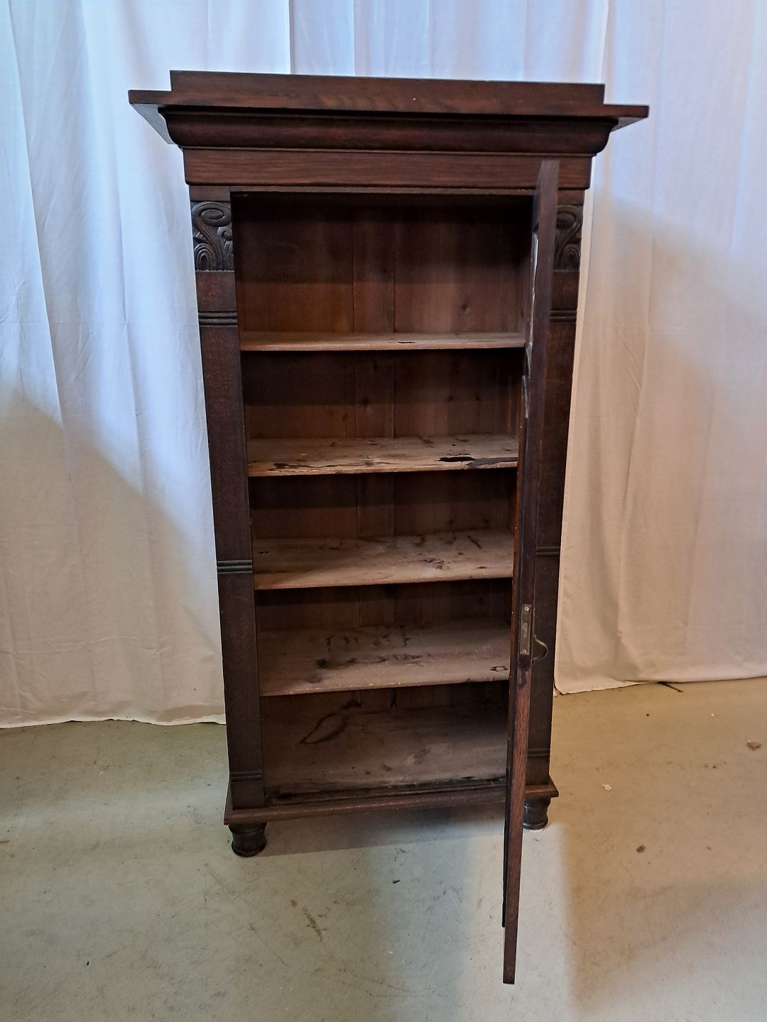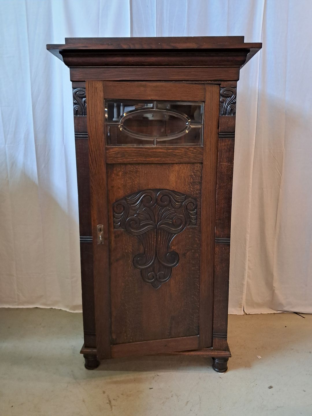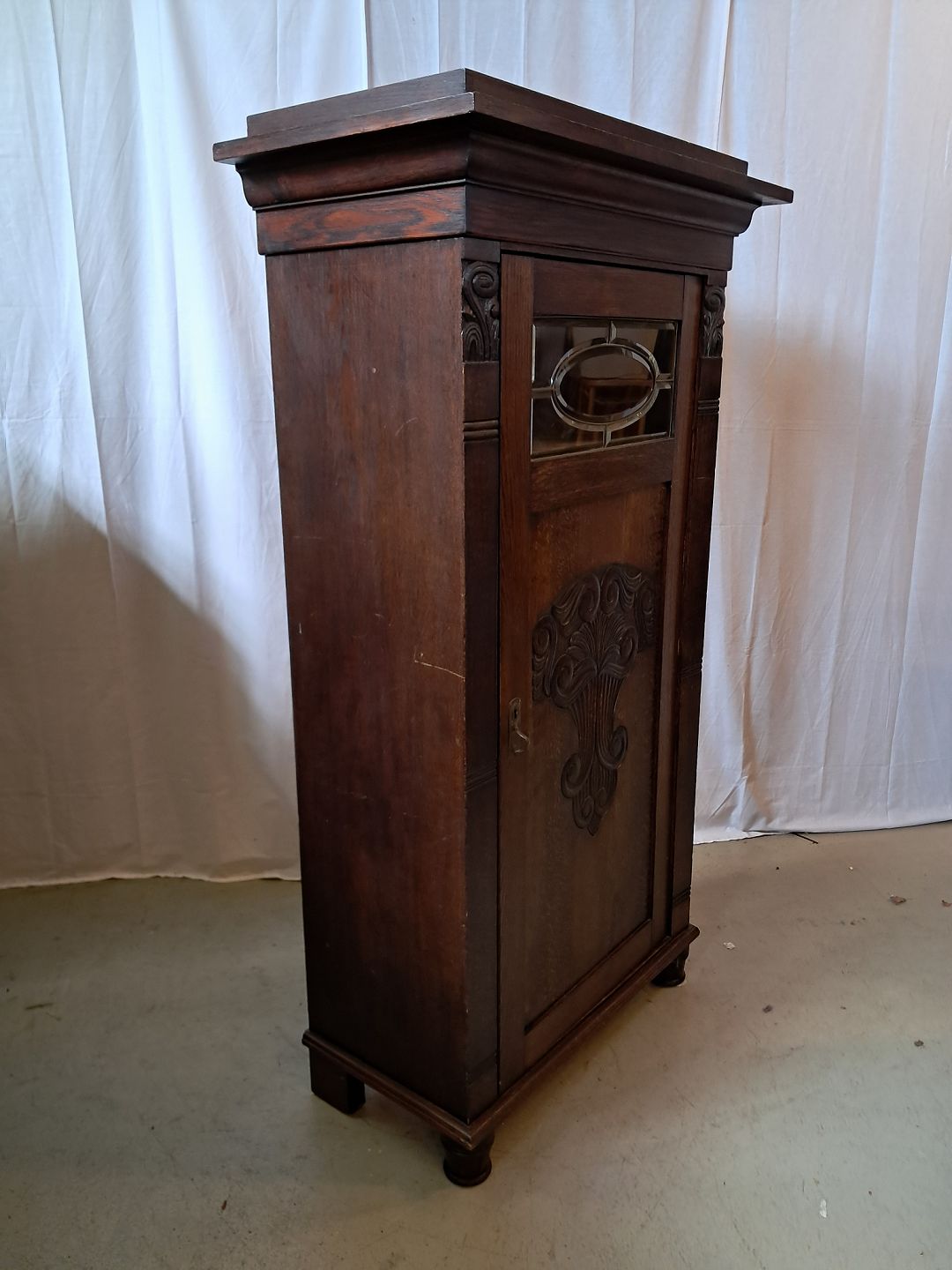 Skab i fineret egetræ, fra 1910erne.Det har brugsspor.