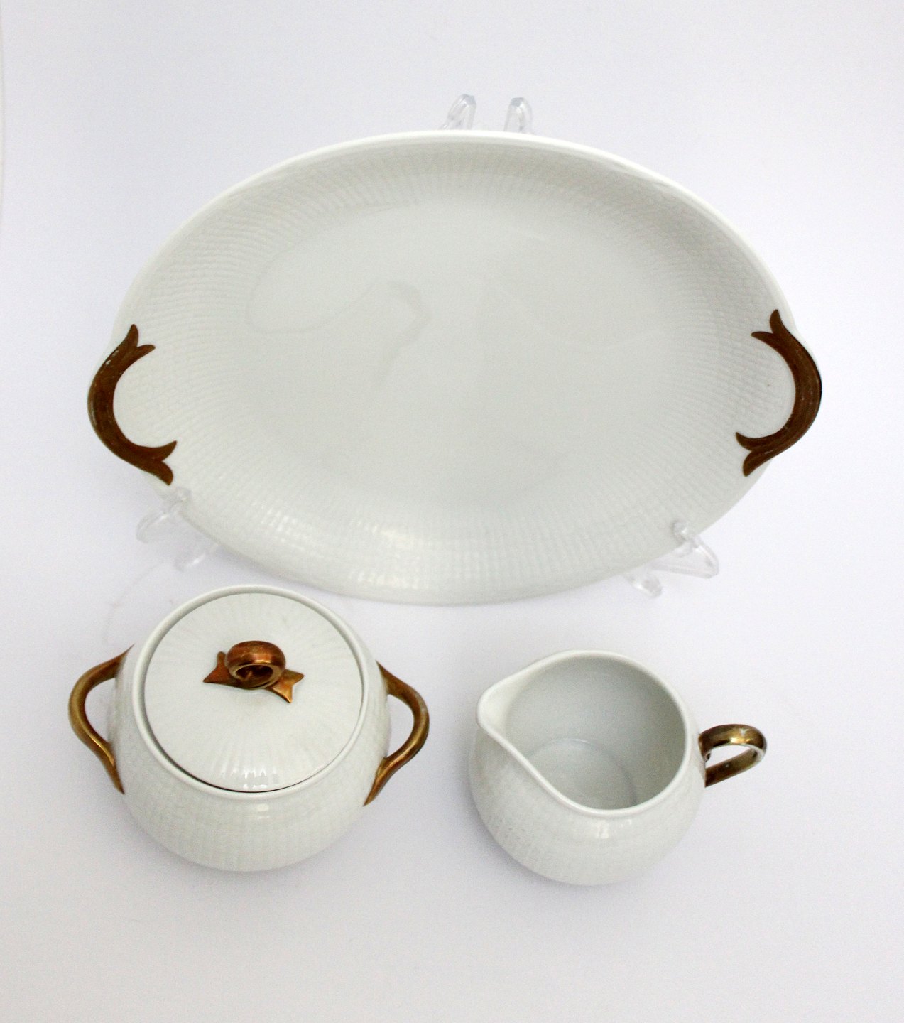 Sukker og fløde, samt kagefad, Grace med guld, Rørstrand