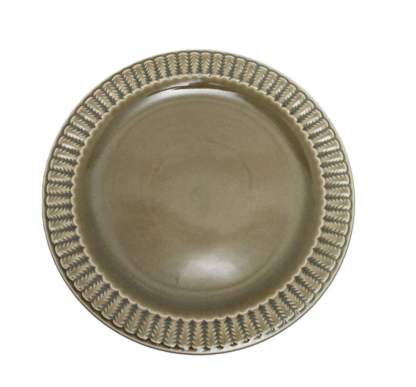 Desiree, Grøn glasseret Stor sidetallerken, som vi desværre ikke kender navnet på, men som er yderst sjælden. Diameter 19 cm. Lettere overfladekrakeleringer. Pris: 50 kr. stk. Lager: 6 Udstiller