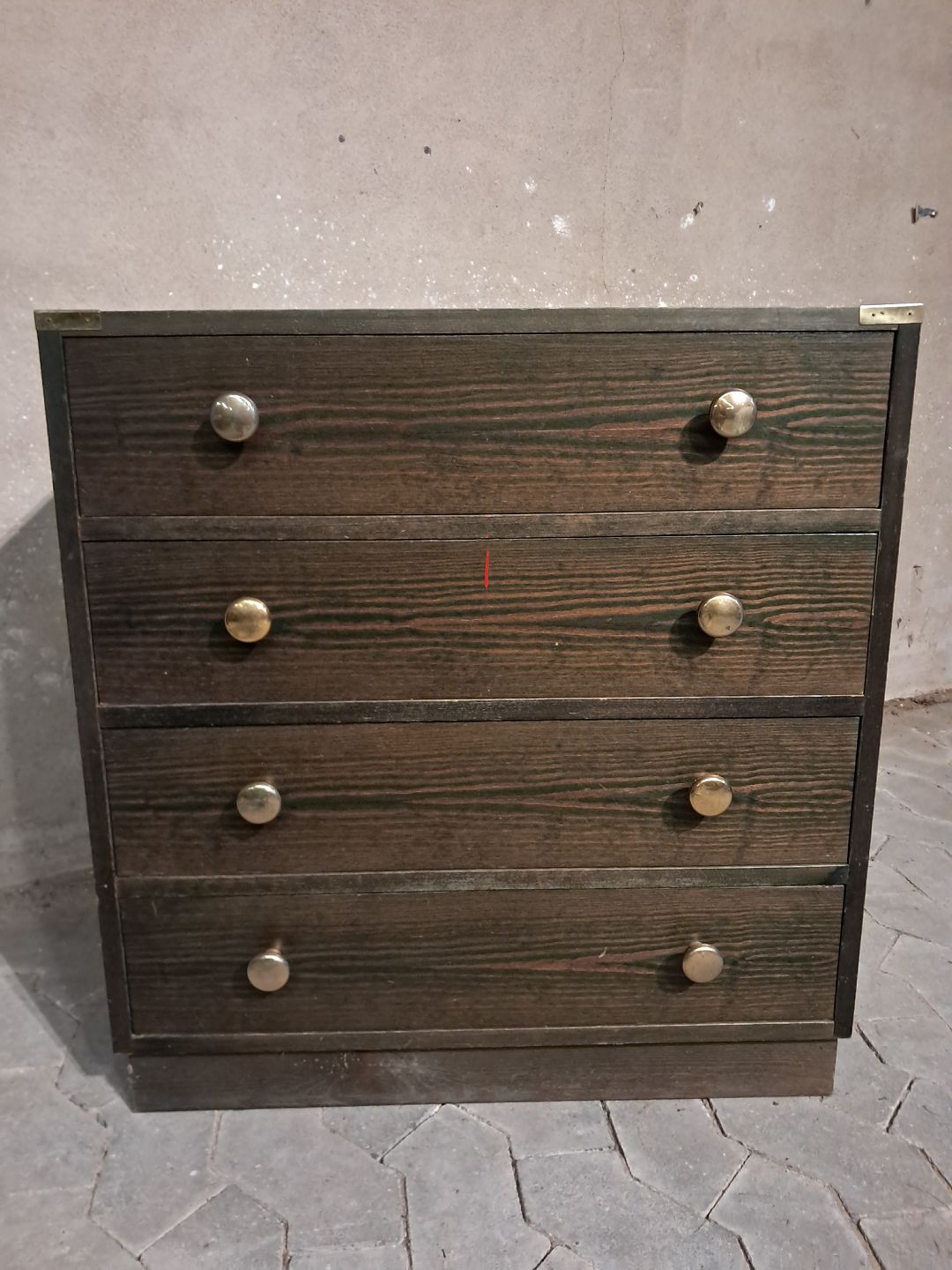 Kommode i fineret og bejdset fyrretræ, fra 1980erne.Den har brugsspor.