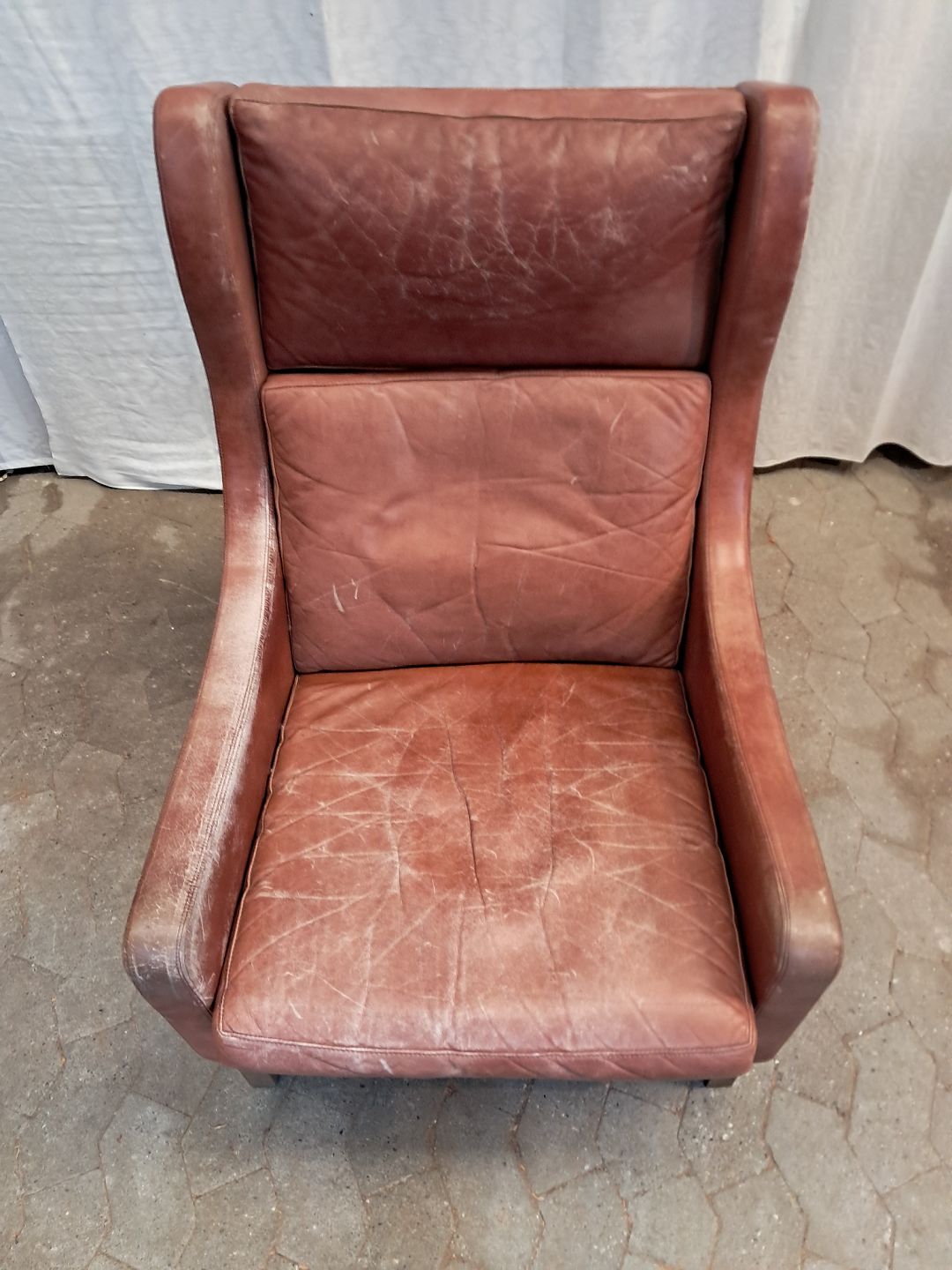 Læder lænestol, fra 1980erne.Læderet er intakt, men trænger til læderfedt.