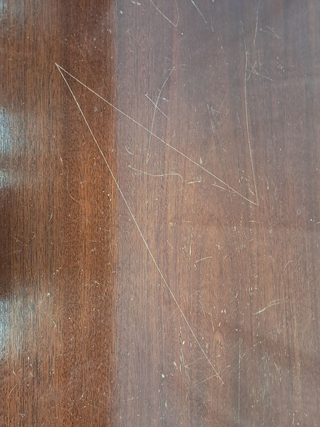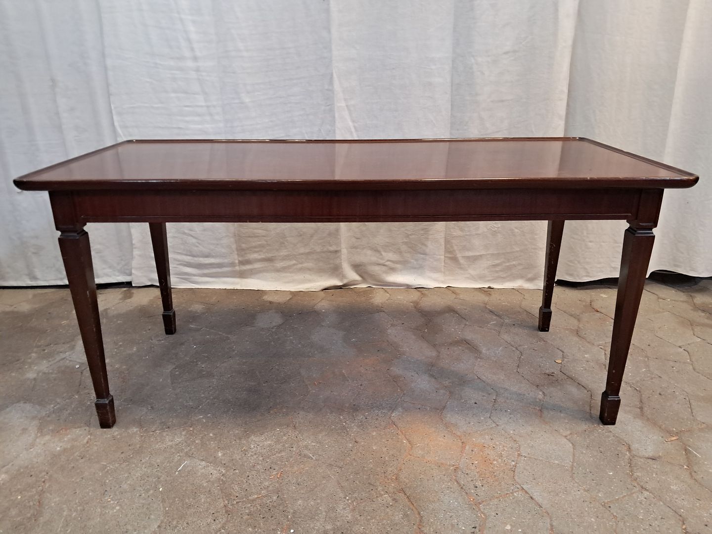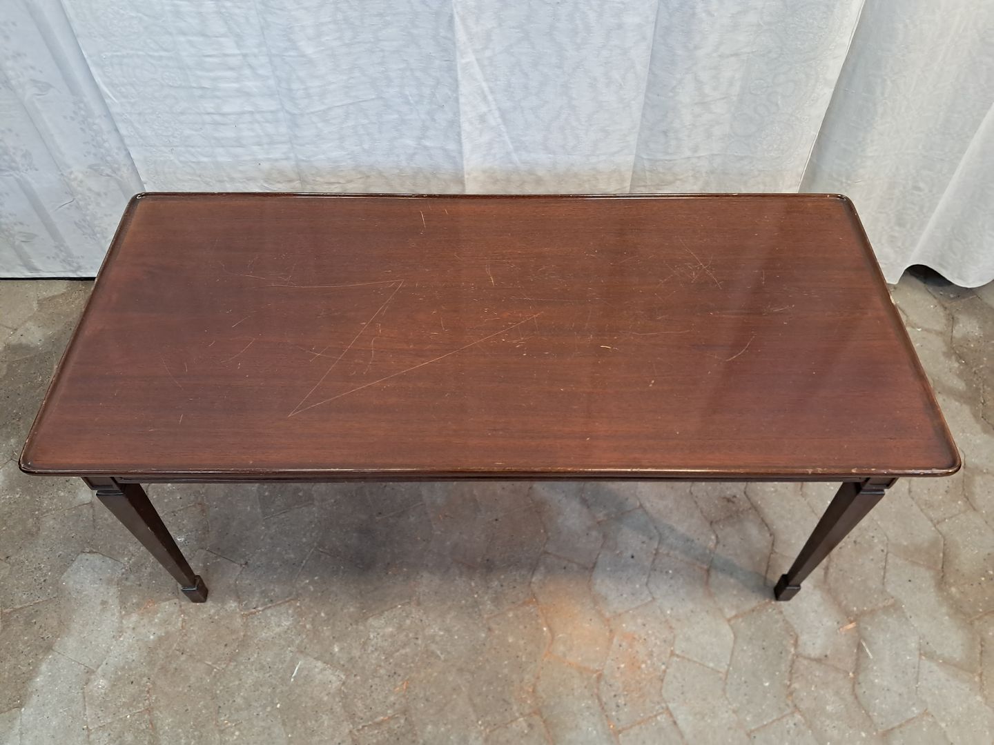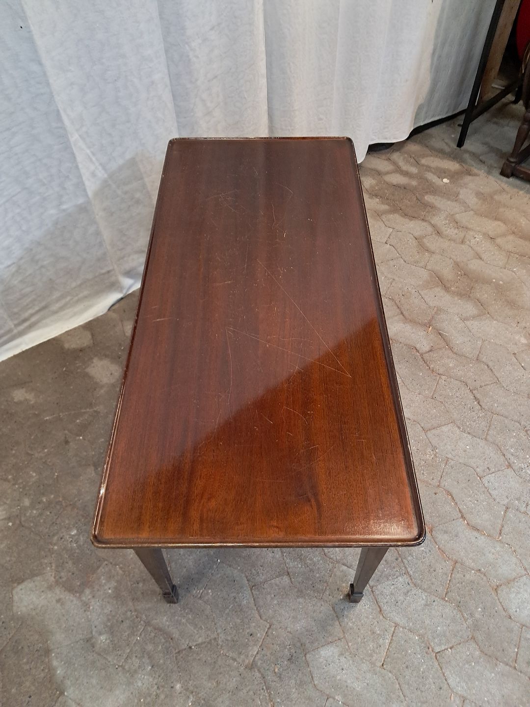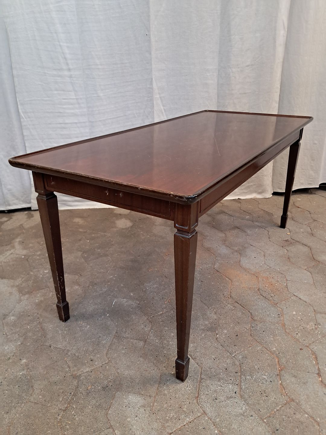 Sopfabord i fineret mahogni, fra 1980erne.Det har brugsspor/ridser.