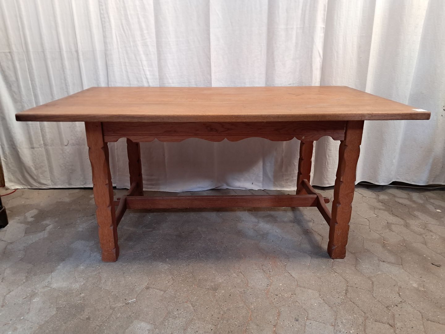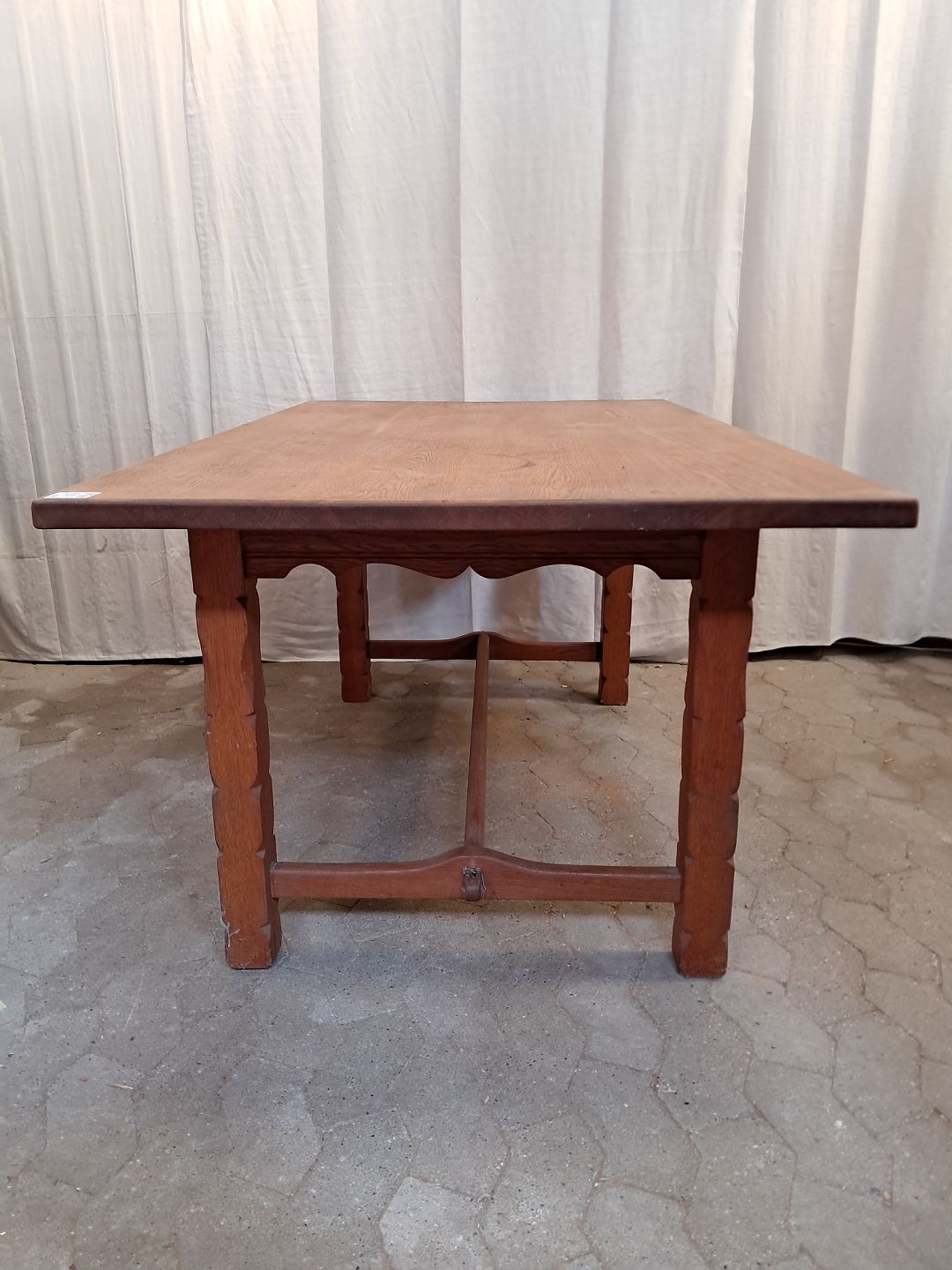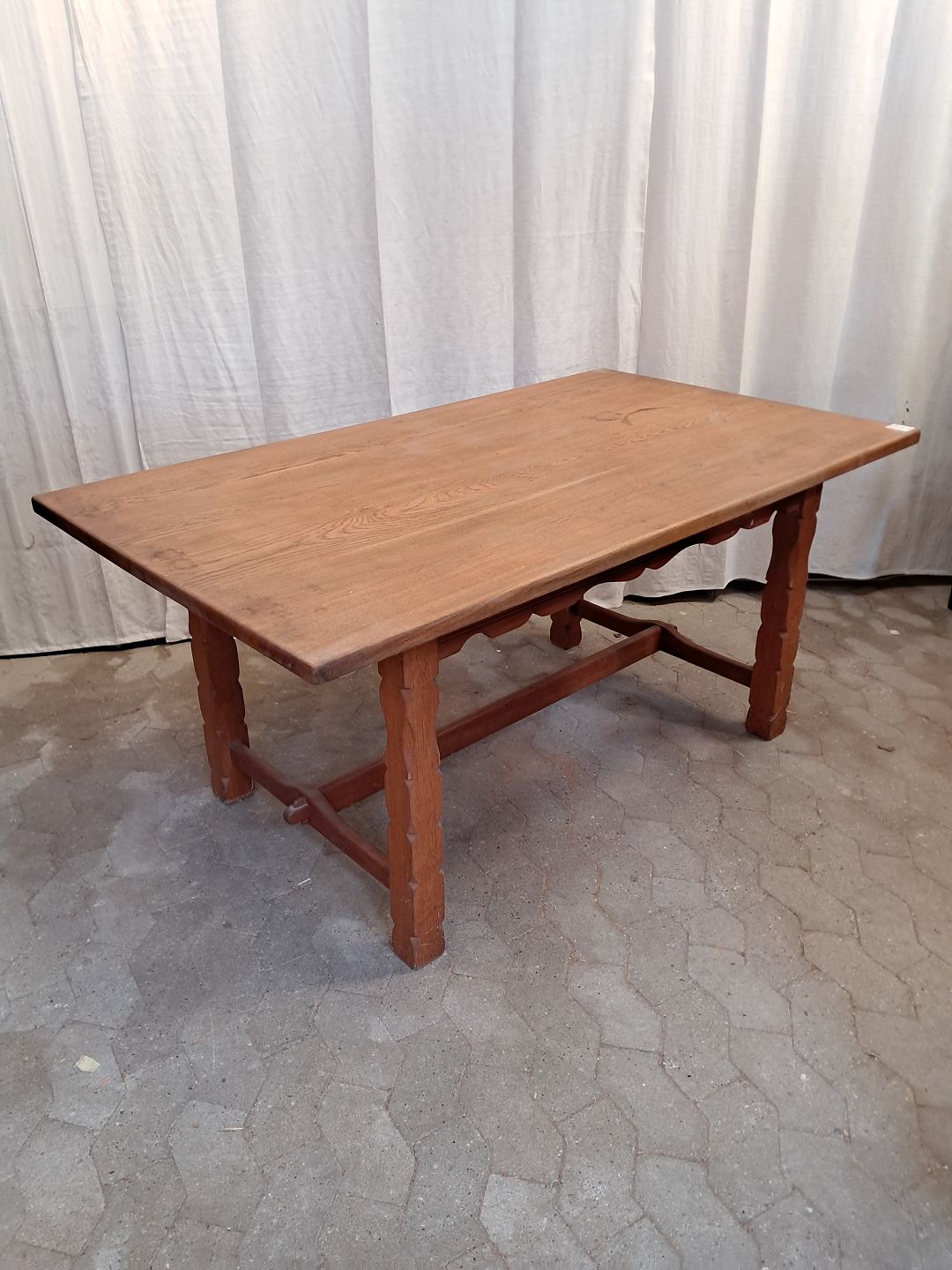 Plankebord i massivt egetræ, fra 1980erne.Det har brugsspor og mangler en lille kile.