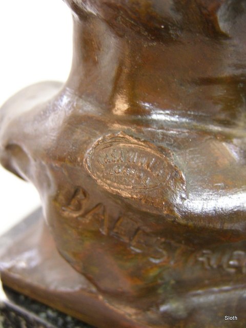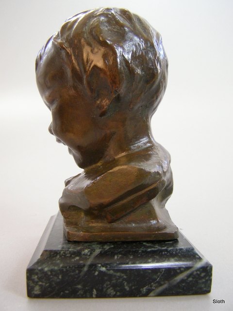 Bernado Balestrieri Barnehoved i Bronze på MarmorsokkelH: 14 cm.
