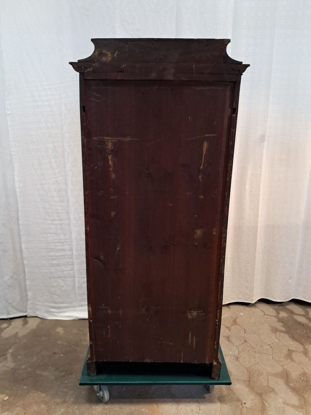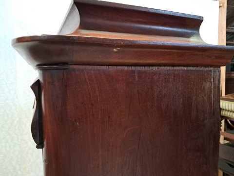 Skab i fineret mahogni, fra 1900erne.Det har brugsspor og mangler liste og låsebeslag.