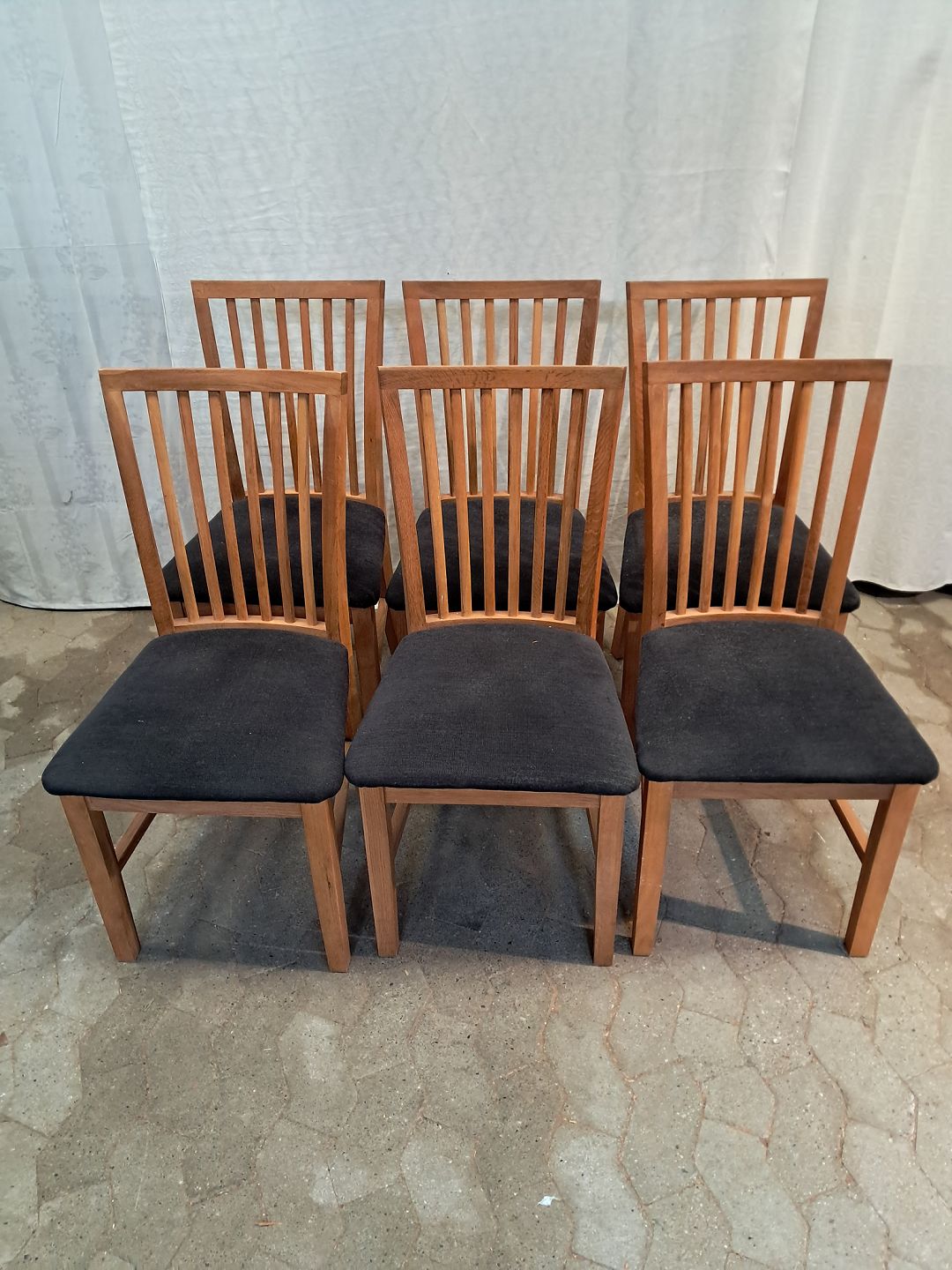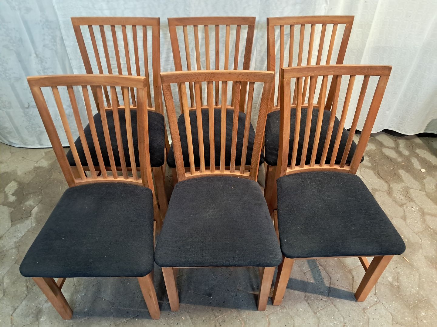 6 Stole i massivt egetræ, fra 2000erne.De har brugsspor.
