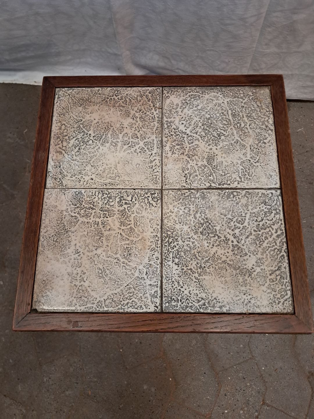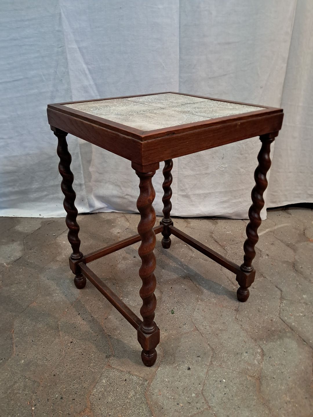 Lampebord i massivt egetræ med kakler, fra 1930erne.'Det har brugsspor og en defekt kakkel.