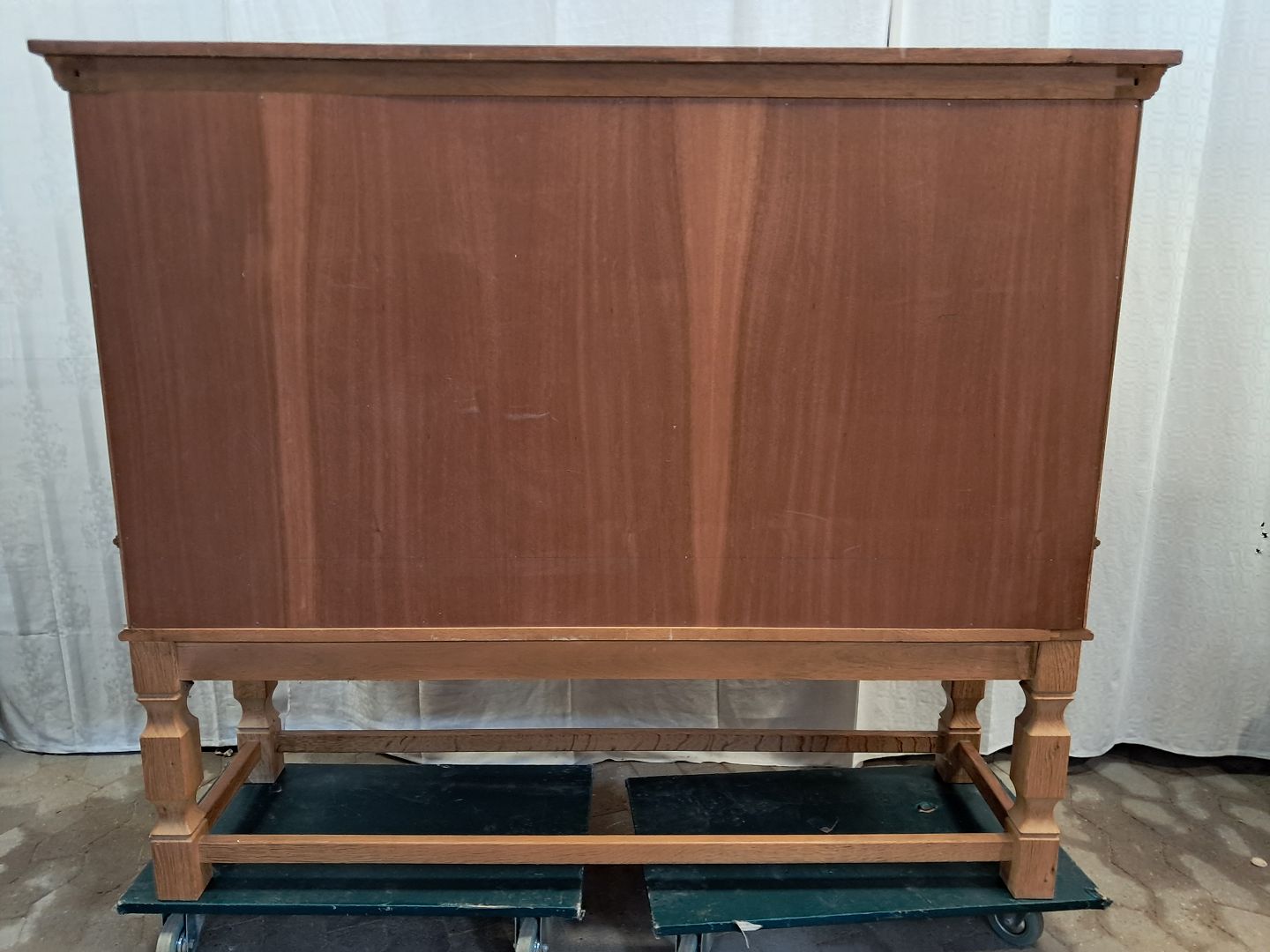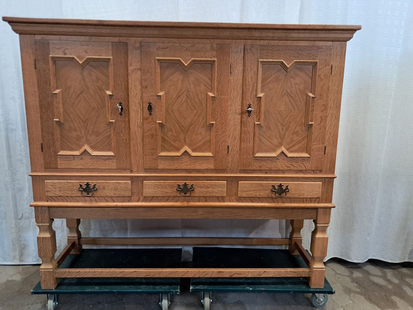 Skab i fineret og massivt egetræ, fra 1980erne.Det har brugsspor.